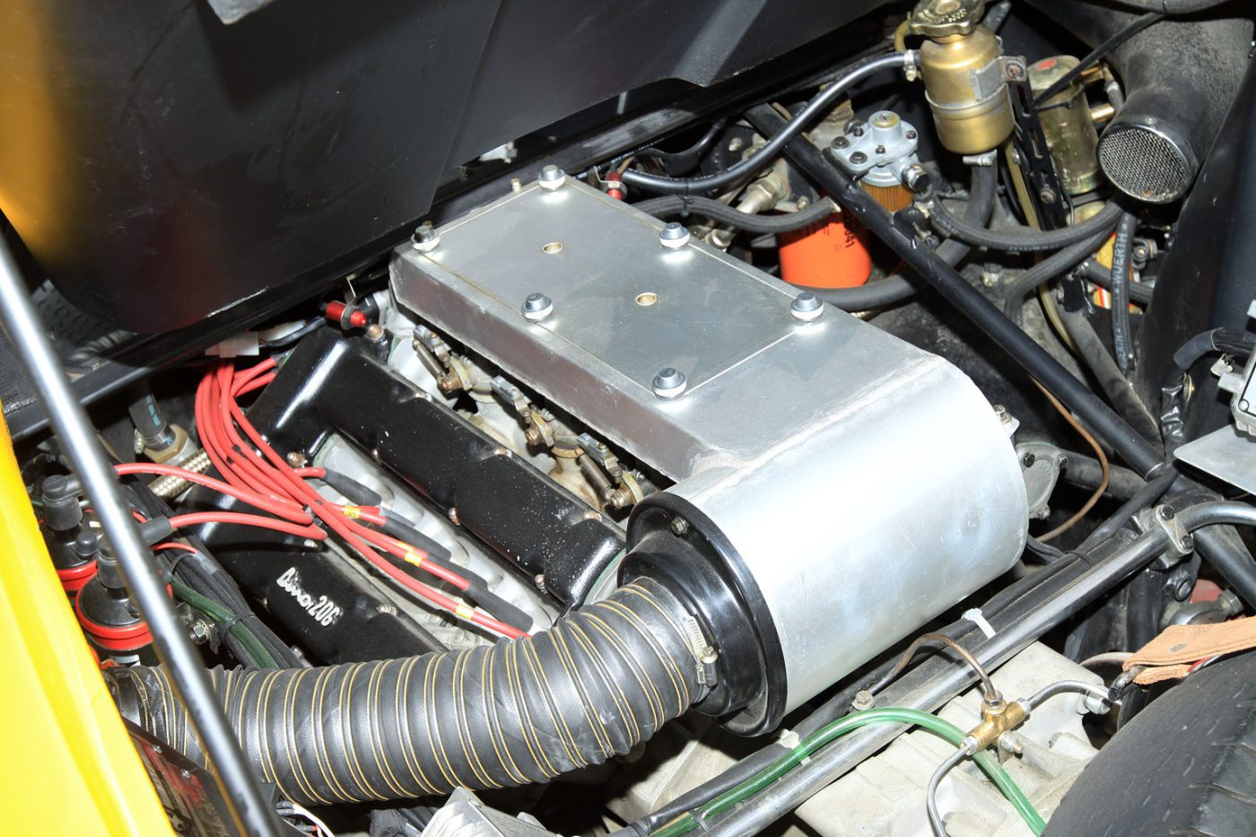 Engineer Vittorio Jano designed the V6 engine which had twin overhead camshafts. Loosely based on the V12, he changed the cylinder bank from 60 to 65 degrees which made the necessary room for carburetors. By 1966, a version of this engine was redesigned by Franco Rocchi and made its way into the 206 sports racing car.