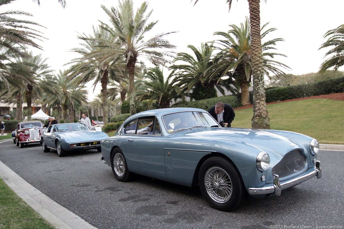 This Mark III is highly documented from new. While it was thought that Mark IIIs were not exported to France until May 1957, a copy of the original build sheet confirms that this car was delivered to the main Aston Martin dealer in Paris, Garage Mirabeau, and delivered to its first owner, Mr. M. Firino-Martell of Cognac, on 12 April, 1957. This original left-hand drive example was specified with front disc brakes, twin exhaust and exceptionally rare triple Weber carburettors. Of note, Mr. Firino-Martell was a member of the Martell family of distilling fame in Cognac, France, whose enthusiasm for motorsport was evident in his association with the development of the Magny Cours racing circuit.