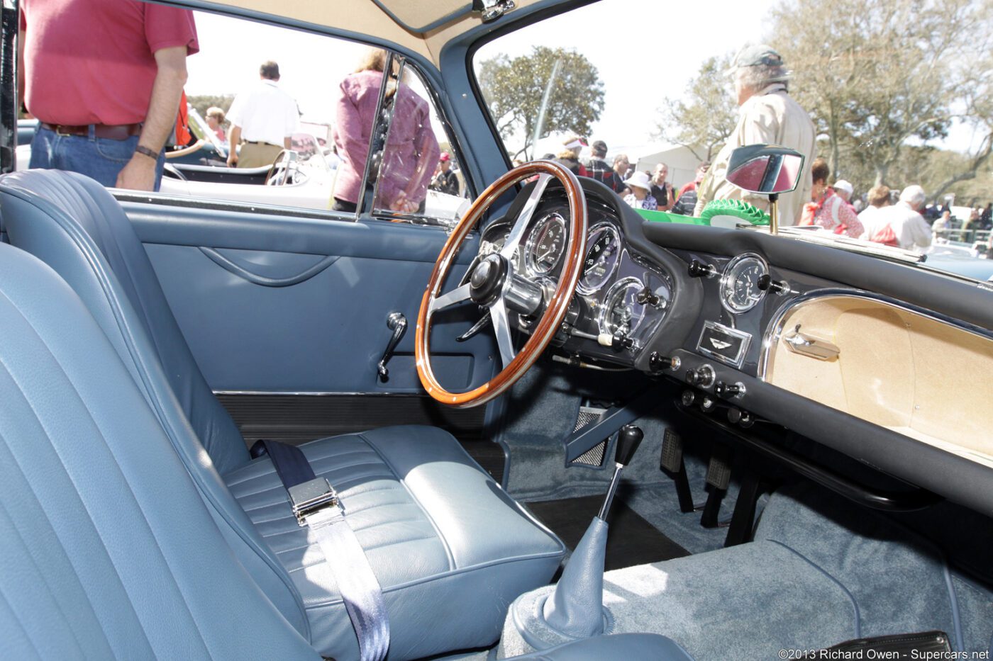 This car is particularly rare as one of 47 with the DBD triple-SU high performance engine producing 180 hp rather than the base 162 hp, left-hand drive and kilometer gauges. Factory extras include a Laycock de Normanville overdrive, twin exhausts, chrome wire road wheels and a wood trimmed steering wheel. Factory records indicate this was M. Pattheyโs personal car, at least initially. He was a Swiss Aston Martin importer in Neuchatel who imported 98 Astons throughout his career.