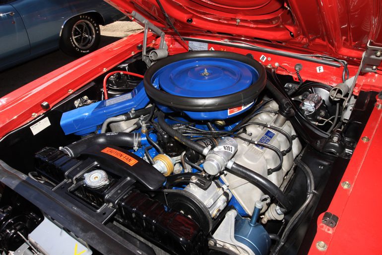 Ford prepared the 429 for inclusion into NASCAR’s Grand National Division. They modified a version Ford’s big block V8 design known as the ‘Ford 385 engine’ and changed the stroke from 3.85 inches to 3.59. Built as a full-on race engine the exhaust ports were so large, it was nicknamed the ‘Shotgun engine’.