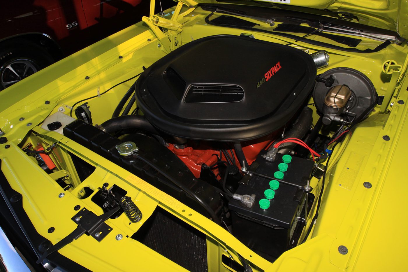 The R/T version (R/T: Road & Track) Special Edition with vinyl roof shown in this photo was powered by a 6.4 liter V8 with 290 hp as standard; the most powerful, optionally available engine for the R/T Special Edition was the seven-liter Hemi V8 with 425 hp.