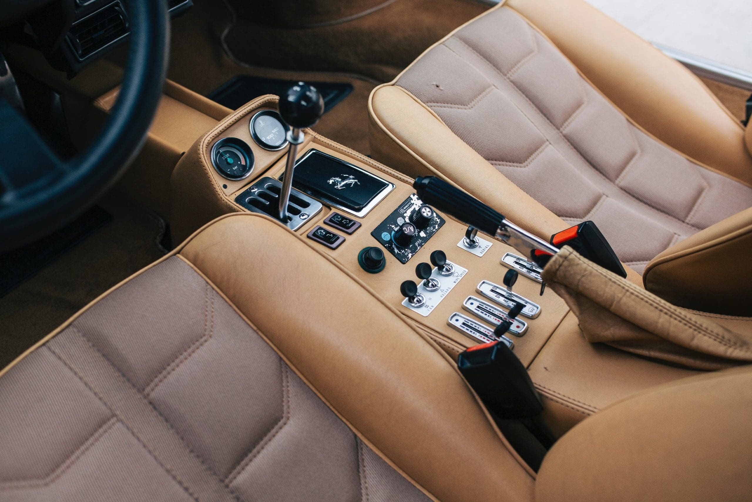 Air conditioning was optional and rarely specified. Sound insulation was minimal, though the turbocharger muffled engine noise compared to naturally aspirated Ferraris.