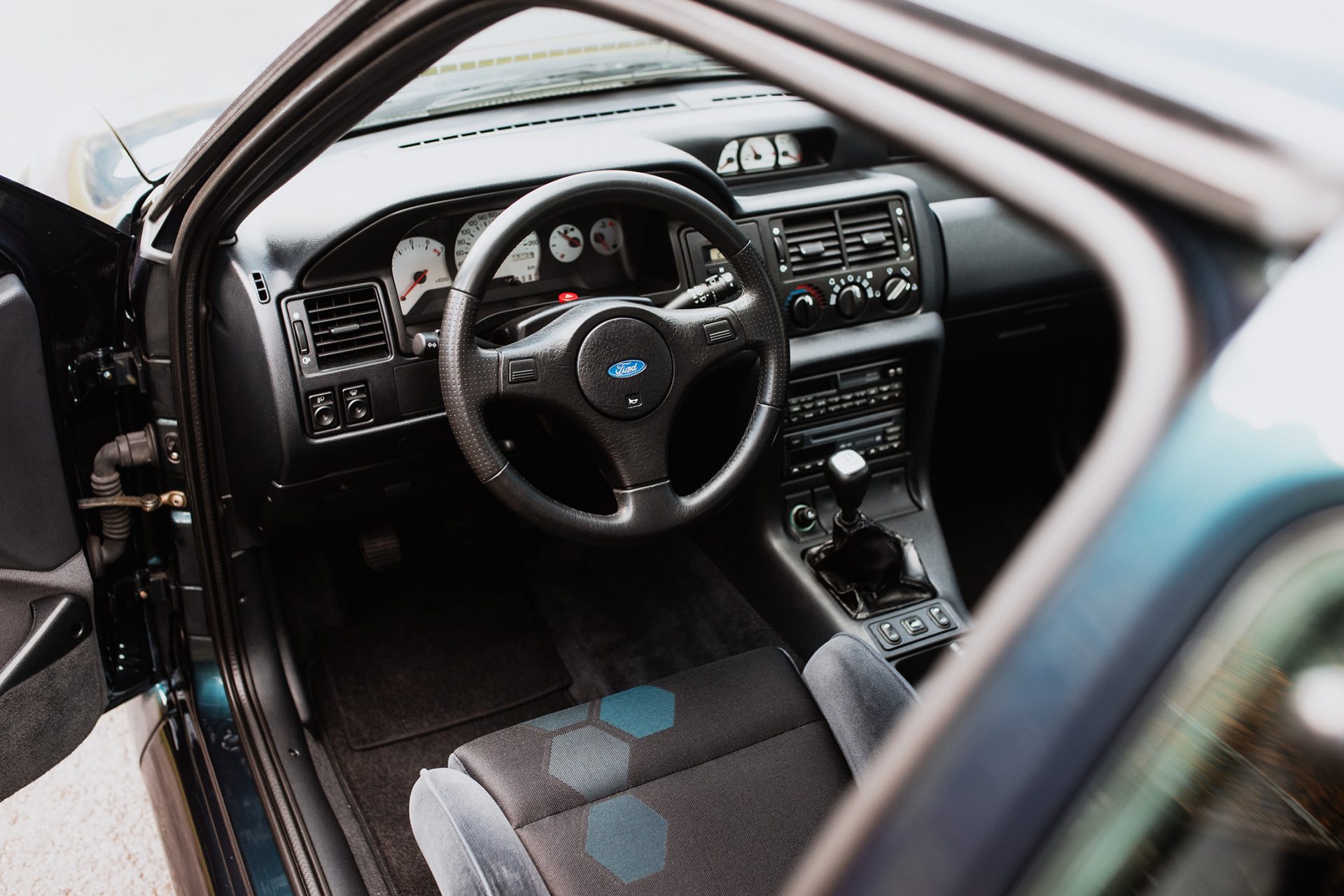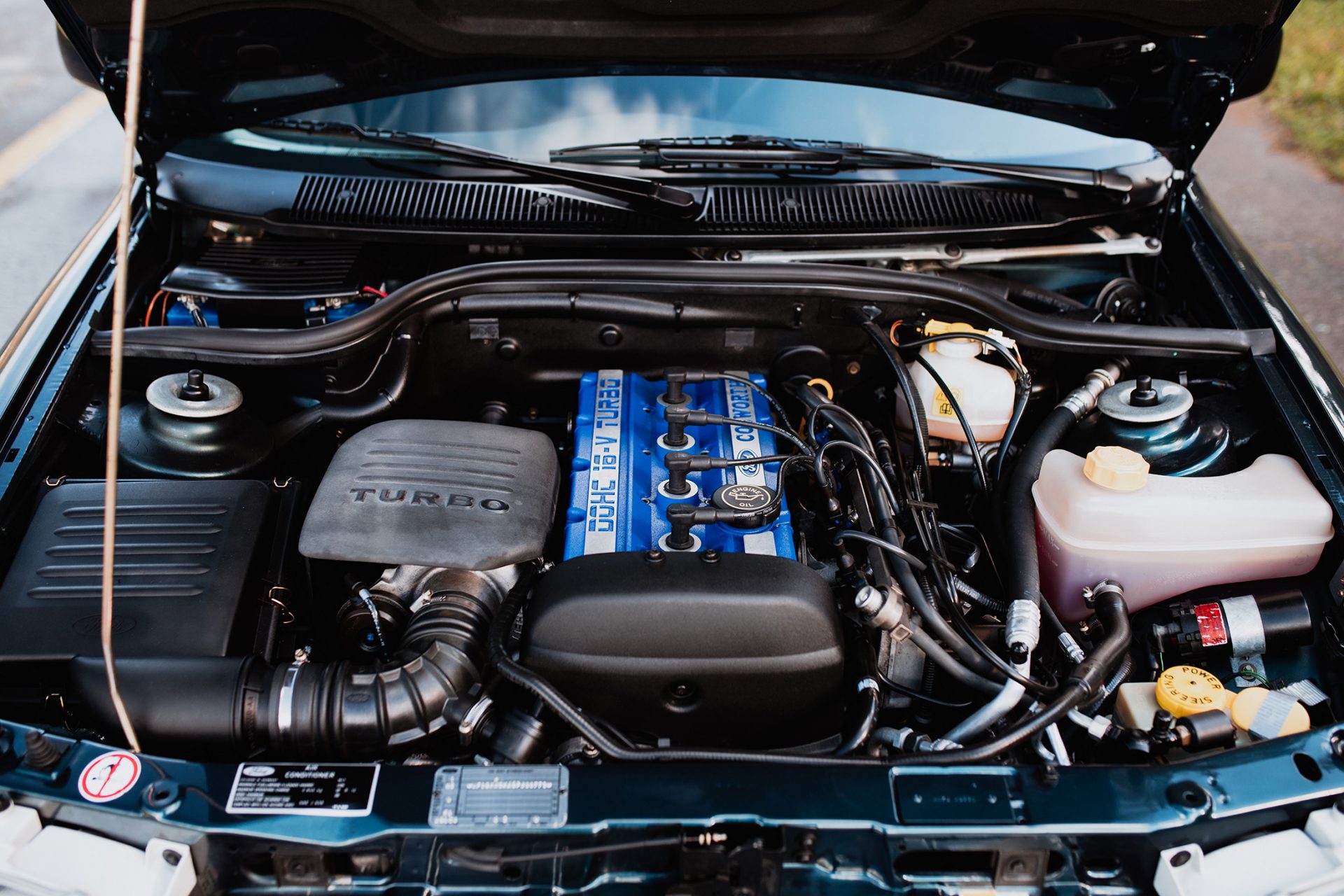 The engine was Ford’s legendary YBT turbocharged inline four. Displacing 1,993cc with a 90.8mm bore and 77mm stroke, it featured a cast-iron block, aluminum DOHC head, and four valves per cylinder. A Garrett T3/T04B turbocharger with air-to-air intercooler provided forced induction.