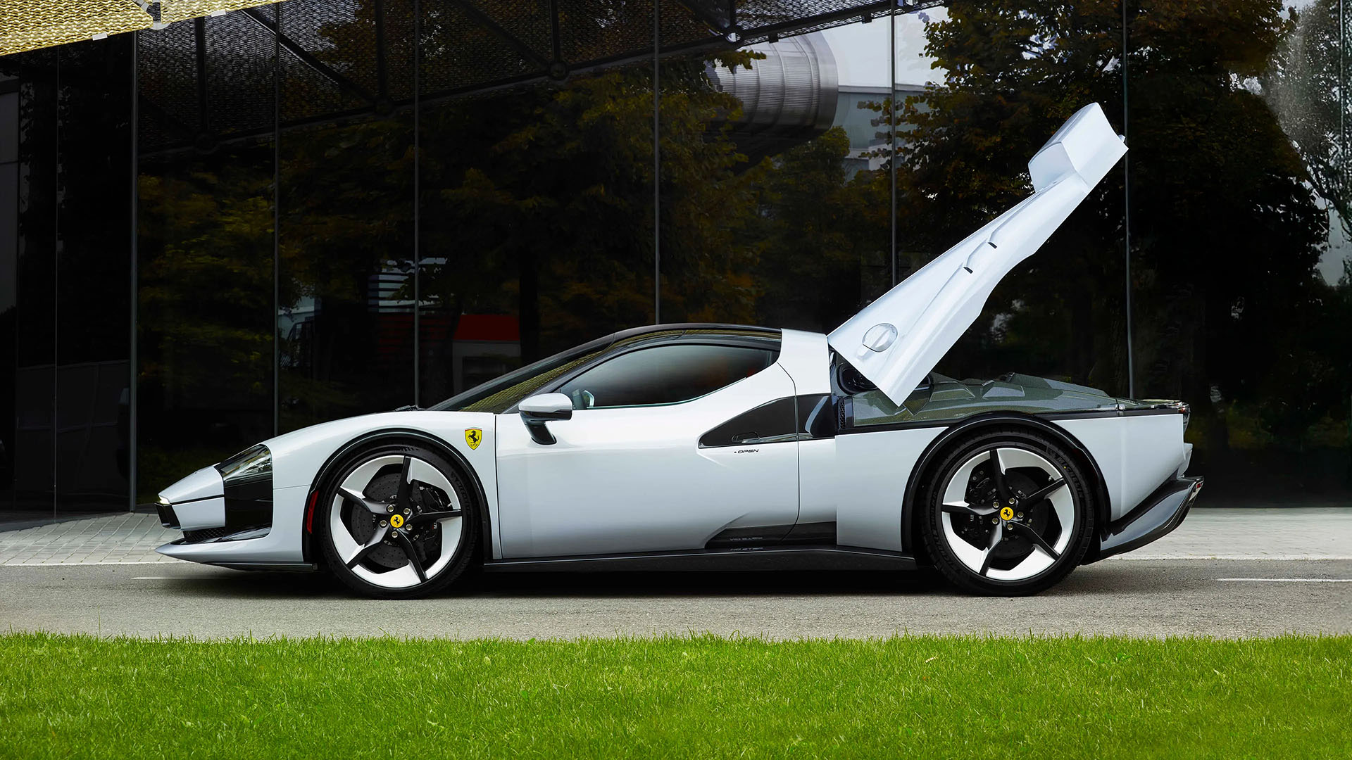 The side profile of the SC40 is dominated by bold intercooler air intakes, reinterpreting the classic NACA ducts through crisp carbon-fiber geometry. Ferrariโ€™s designers describe the carโ€™s vertical elements โ€” from the wing edges to the door cuts โ€” as a kind of โ€œvisual rhythm,โ€ like a musical composition structured around tension and release.