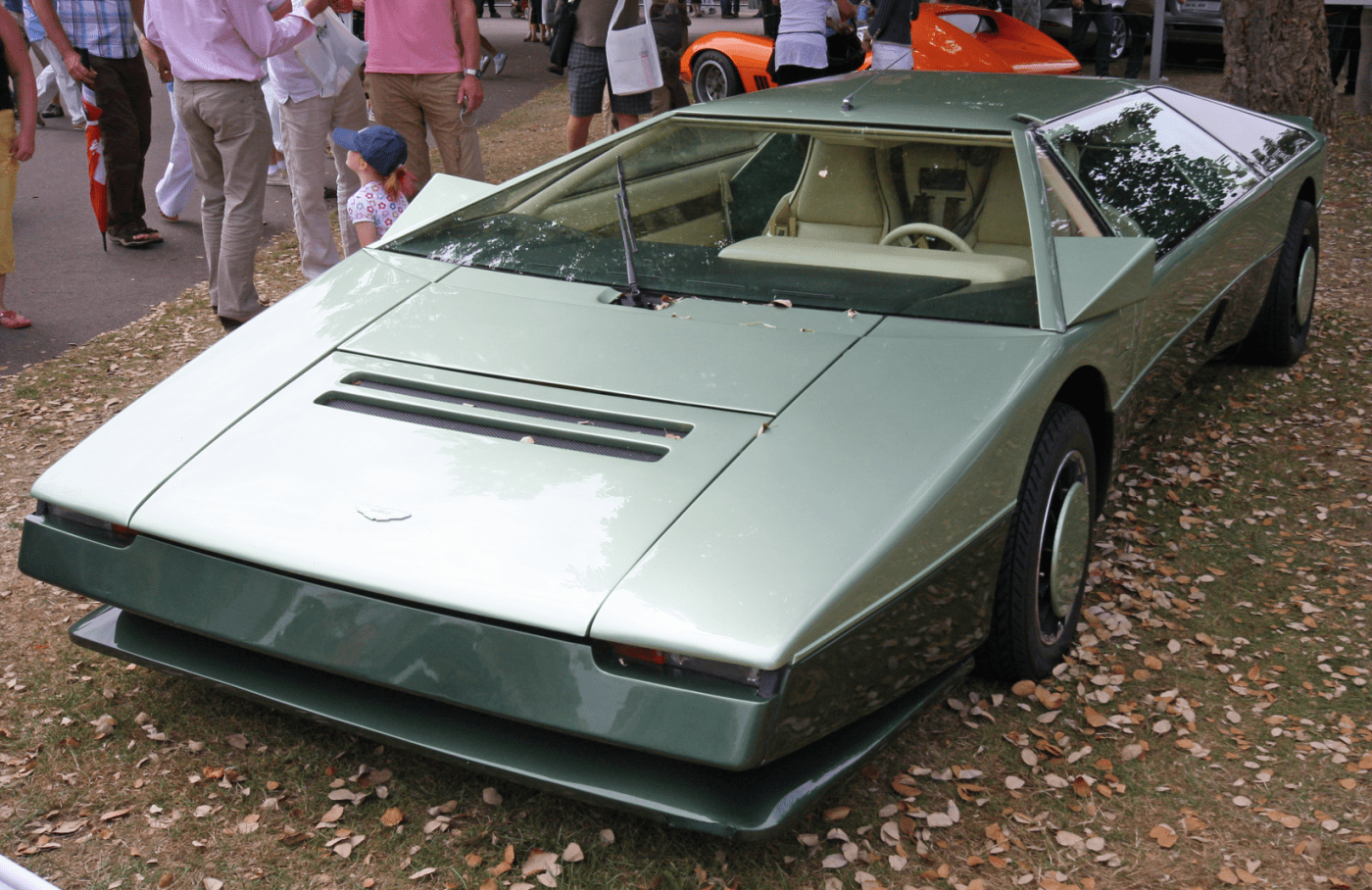 Designer by William Towns, the Aston Martin Bulldog was intended to be a 25 run limited edition model (only one was ever built).ย The Aston Martin Bulldog was powered by a 5.3 liter twin-turbo V8 delivering with over 600ย bhp and 500ย lbยทft of torqueย – pretty amazing for 1980.ย The first test drive of the Bulldog came in late 1979 and the Bulldog achieved a verified top speed of 191ย mph.