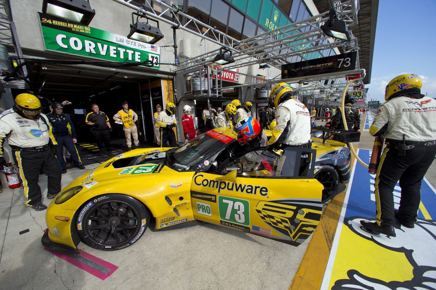 Corvette Racing, 24 Hours of Le Mans in Le Mans, France; June 22-23, 2013; Compuware Corvette C6.R #4 driven by Oliver Gavin, Tommy Milner, and Richard Westbrook; Compuware Corvette C6.R #3 driven by Jan Magnussen, Antonio Garcia, and Jordan Taylor (Richard Prince/Corvette Racing Photo).