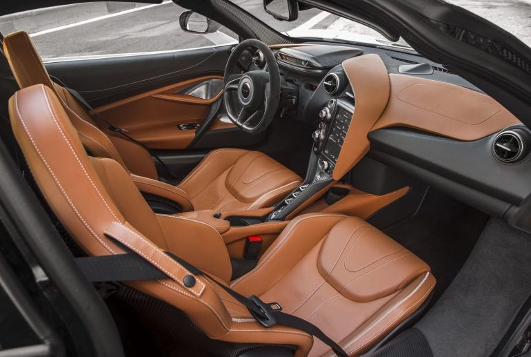 Deep inside the carbon fiber monocoque is also a redesigned twin-turbp V8 with a 4.0 liter displacement. It generates 710 hp and 568 lb-ft of torque which sends the 720S to 62 mph (100 km/h) in less than 3 seconds and through to a top speed of 212 mph (341 km/h).