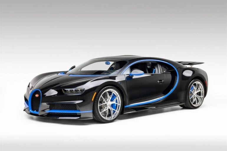 The 2018 Bugatti Chiron you see here is a stunning, two-owner example of the marque’s legendary hypercar, showcasing a truly bespoke specification. Finished in Full Black Exposed Carbon Fiber—a $315,000 option—it is accented with Light Blue Sport highlights on the brake calipers and the underside of the rear wing. Other...