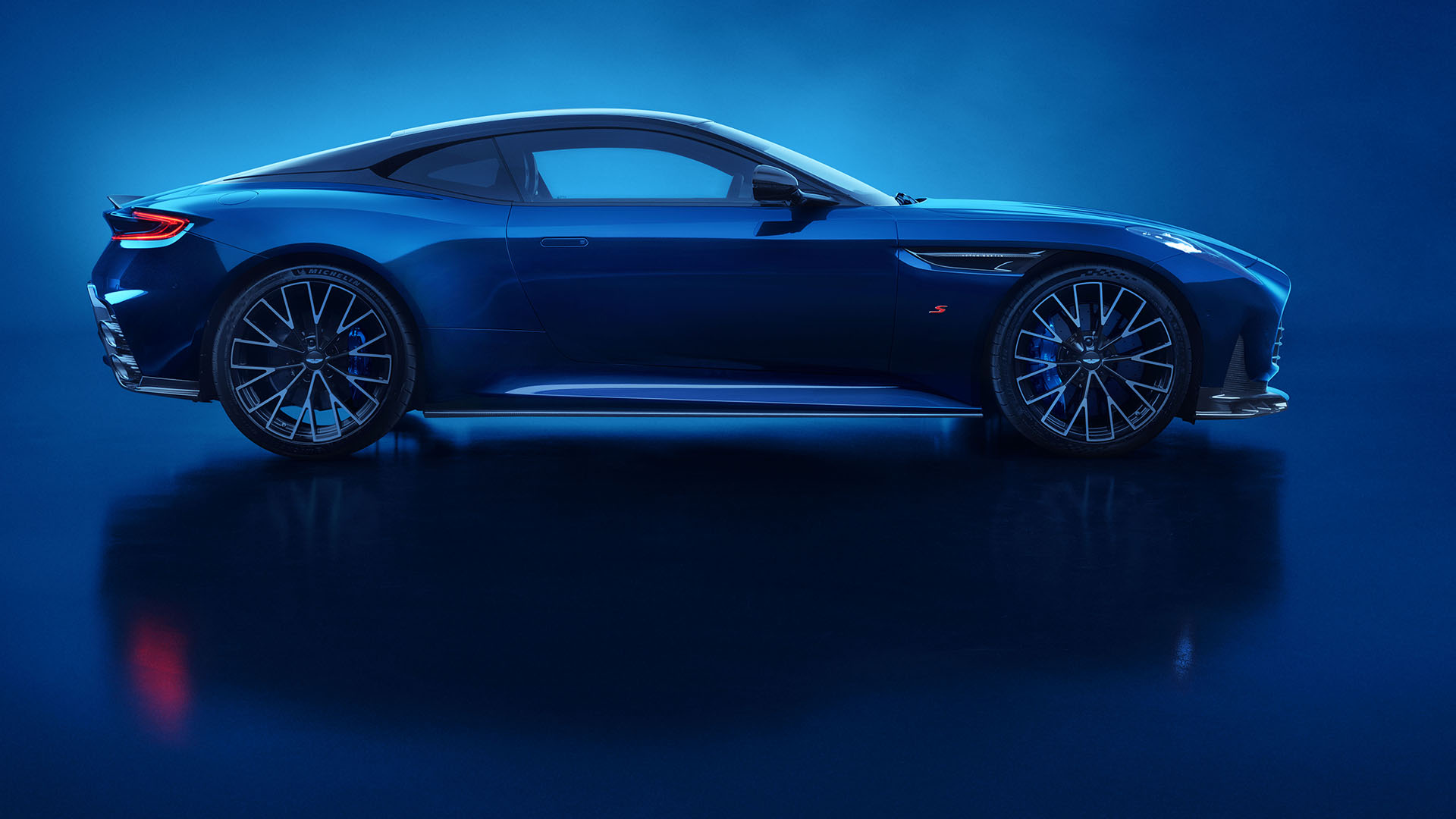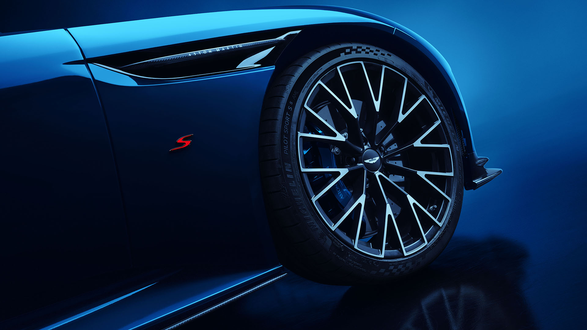 New gloss black side sills extend the splitter’s line, visually lowering the car’s profile, while signature ‘S’ badges — crafted by hand in bright or dark chrome and finished with red glass enamel — mark the DB12 S as something truly special. At the rear, a redesigned diffuser houses stacked quad exhausts, completing a look that is as functional as it is ferocious.