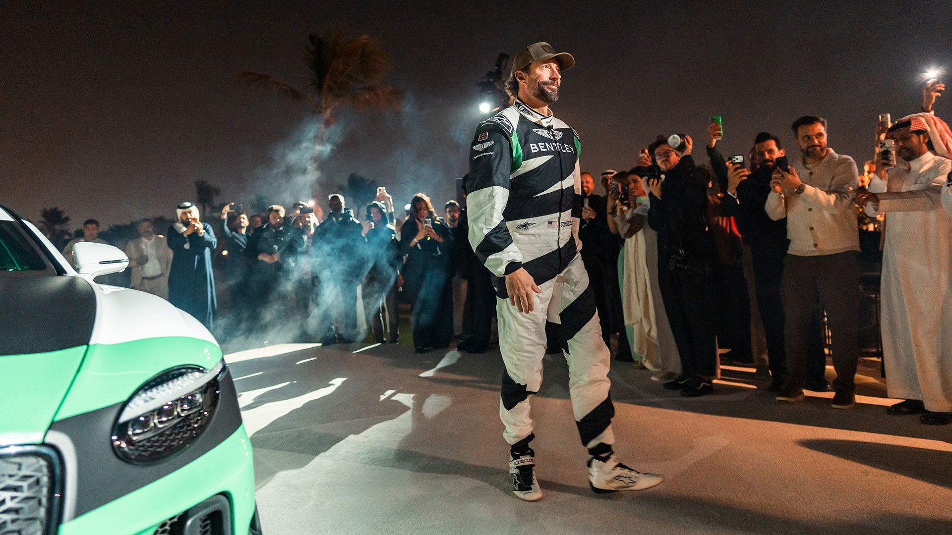 The evening opened with the launch car presented in ‘Daybreak’ specification, finished in Jetstream Matte with Arctica and Portofino livery, setting the tone as VIP guests arrived. At 9pm local time, Bentley premiered Supersports: FULL SEND, a high-octane film starring motorsports and action-sports legend Travis Pastrana, played simultaneously across Bentley’s global channels and on a massive 12-metre screen at the event.