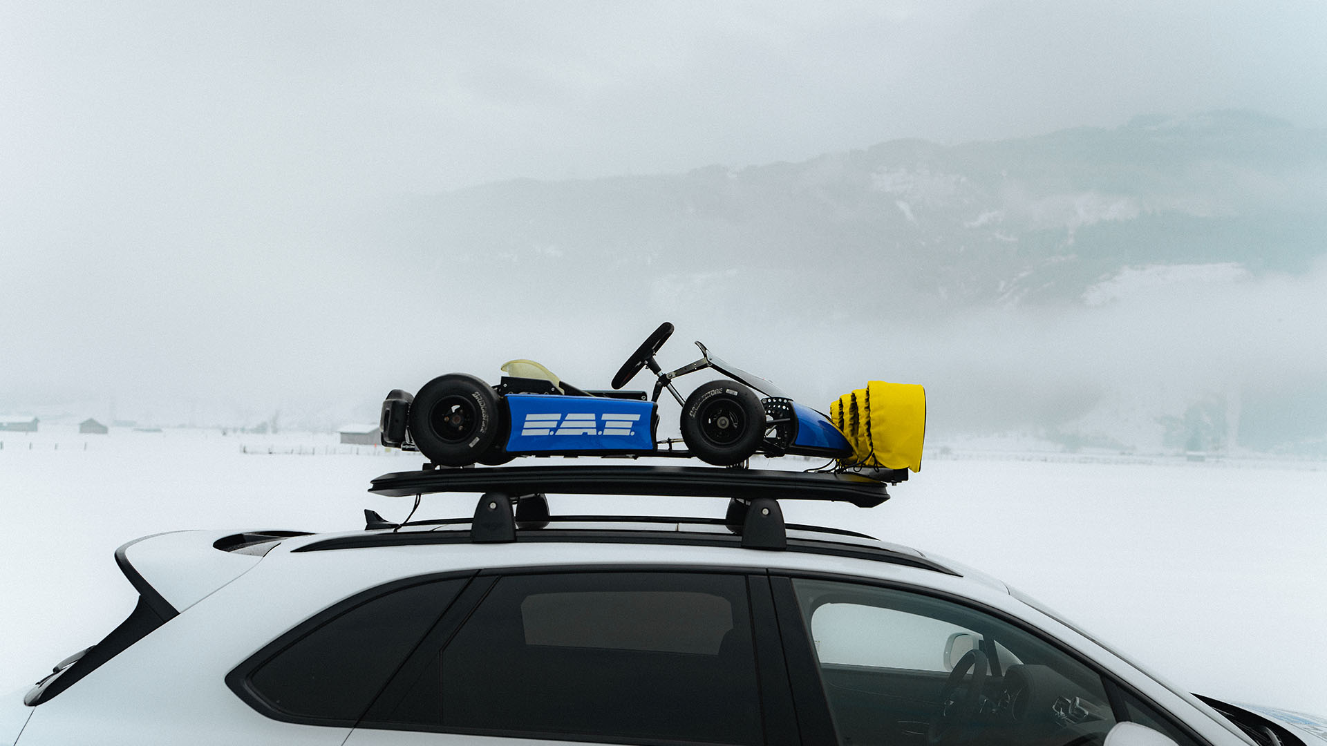 The exterior has been kept intentionally purposeful. Roof-mounted storage and four auxiliary spotlights hint at long-range adventure, while the concept’s roof rack even carries a Bambino-size electric go-kart, as used in the FAT Karting League, to demonstrate added cargo capability. With these additions, the overall height stretches to 2.49 metres. At the rear, the Akrapovič titanium sports exhaust remains a visual and auditory centerpiece, while twin front towing eyes reinforce the concept’s rugged intent.