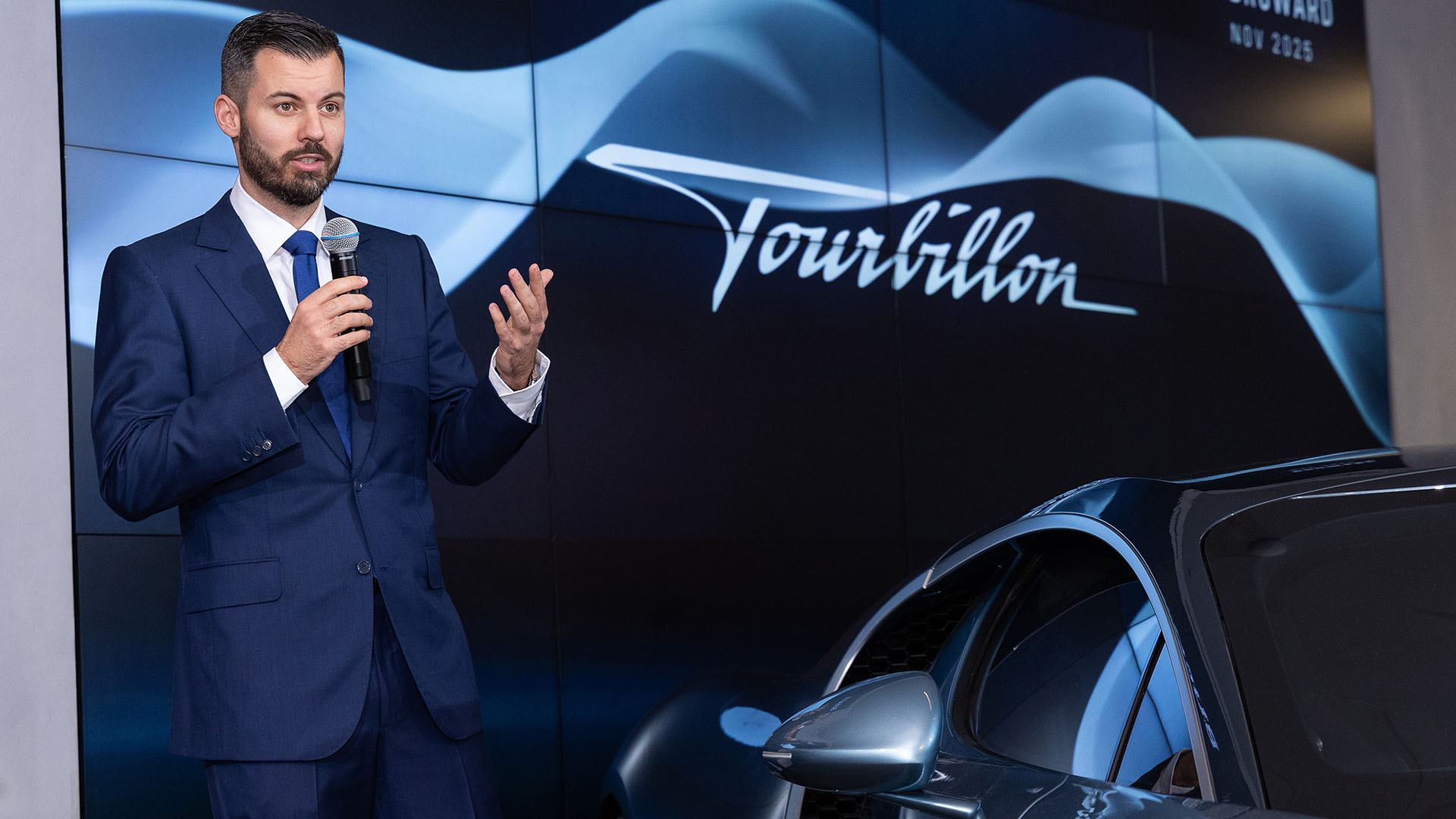 The festivities continued with an intimate waterfront reception, where Bugattiโs global leadership, including Mate Rimac and Managing Director Hendrik Malinowski, joined clients to share stories, experiences, and memories from the worldโs most exclusive automotive gatherings. Guests recalled their first encounters with the Tourbillon, whether in Molsheim or during its U.S. debut, as well as highlights from Monterey Car Week and the Wynn Las Vegas Concours.