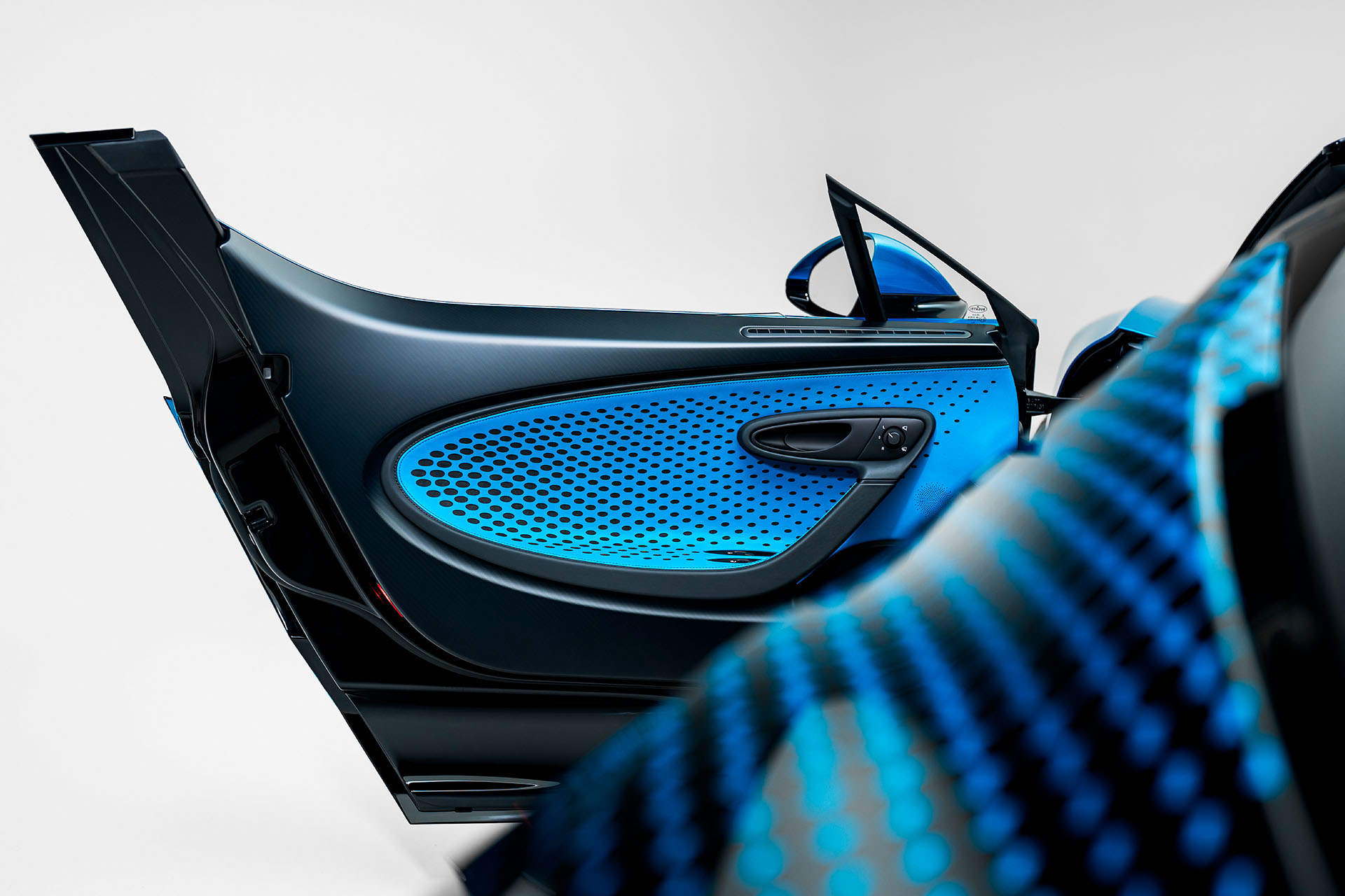 This marks the first time Bugatti has extended such a graphic seamlessly across multiple interior surfaces, an engineering challenge as much as a design one.