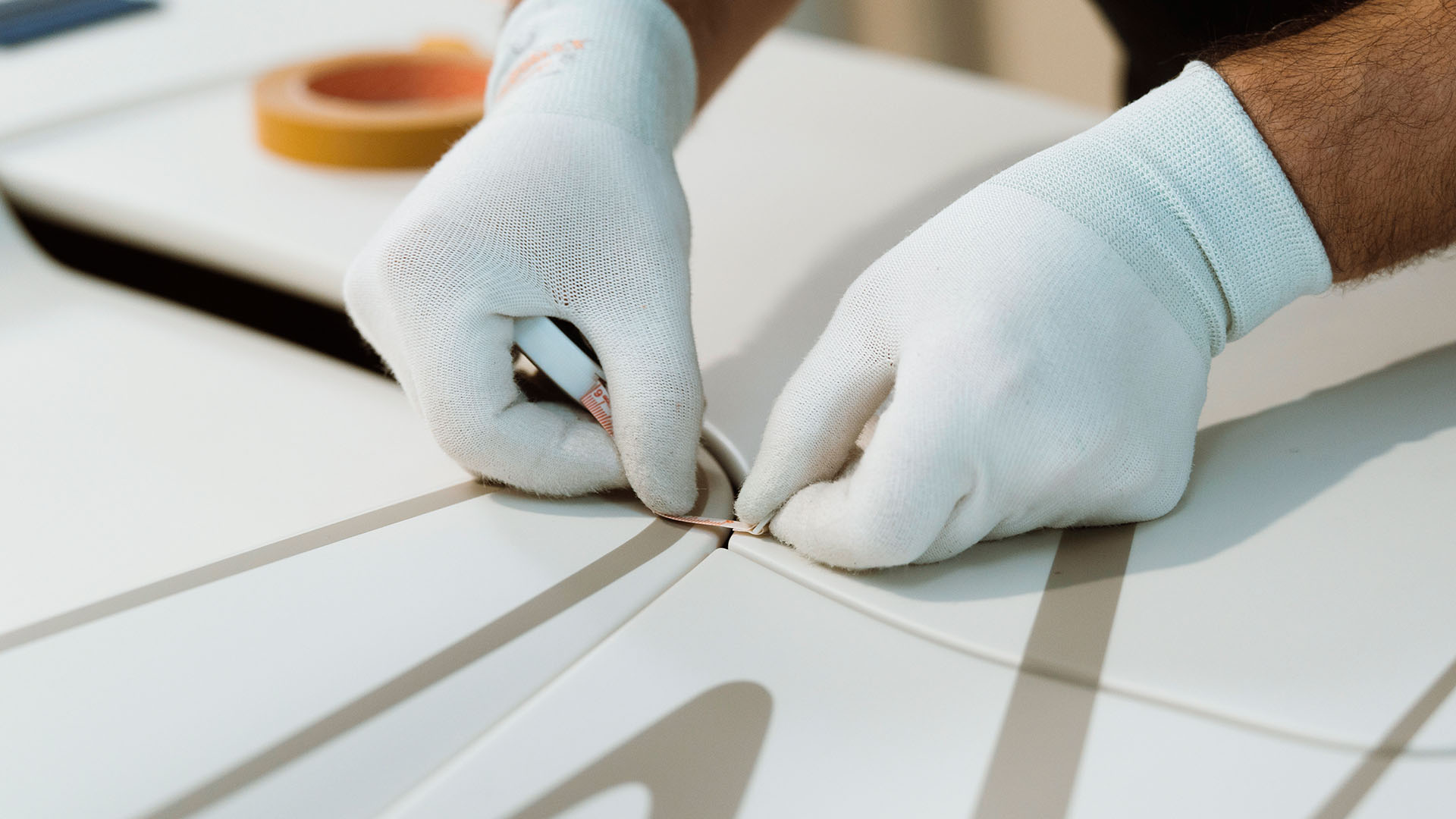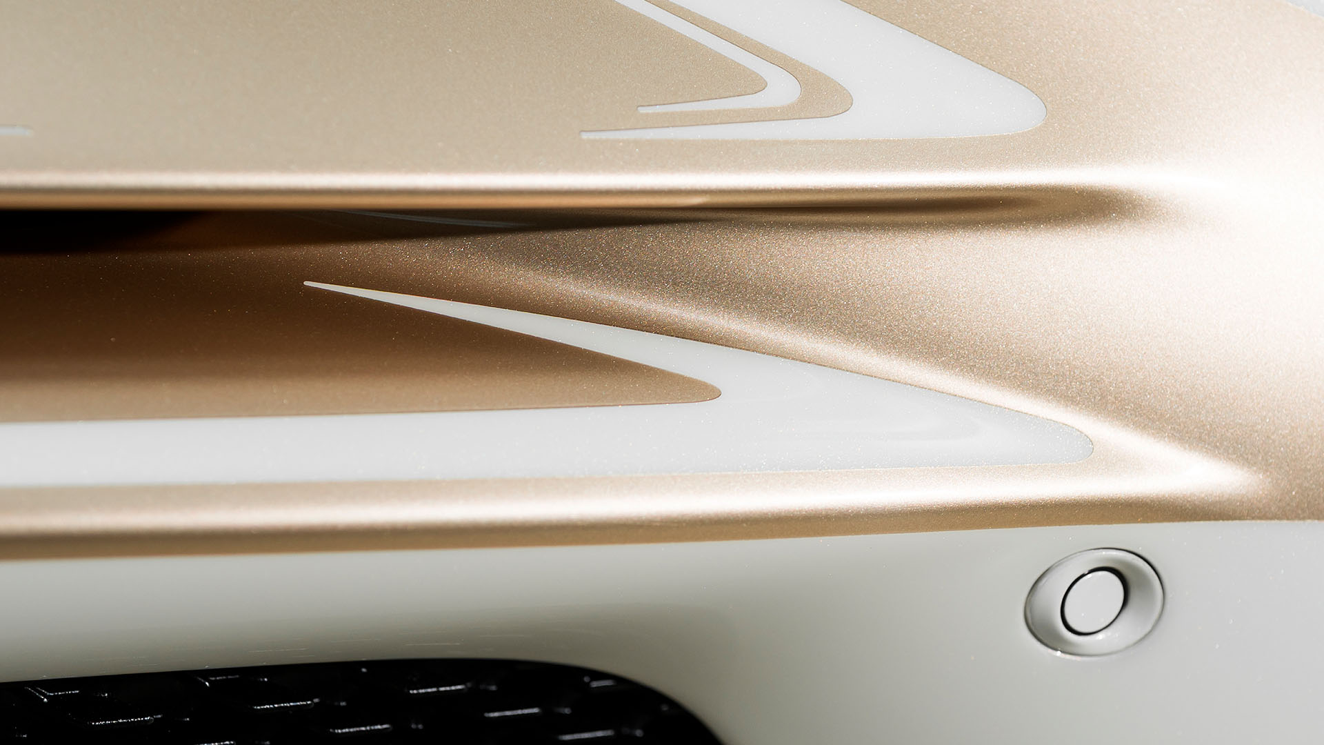 Inspired by Bugatti’s hand-painted “Vagues de Lumière” finish, a technique designed to emphasize the way its hypercars capture and reflect light, the team developed a striking two-tone concept symbolizing the interplay between sky and ground. The final specification features two entirely new bespoke hues: a warm, gold-infused tone across the upper body and a refined warm white enveloping the lower sections