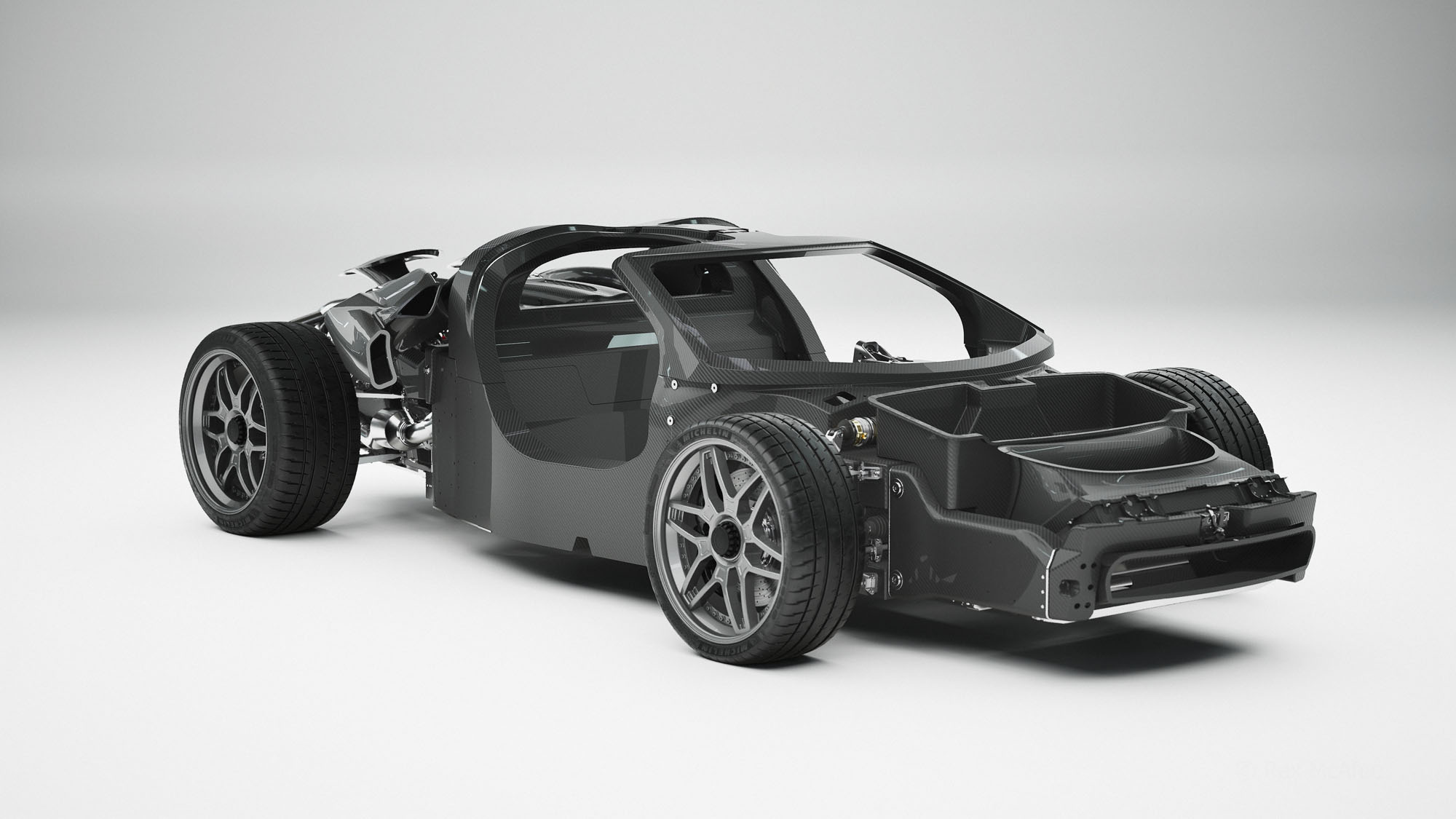 - Chassis & Body: All-Carbon Fiber Monocoque & Subframes