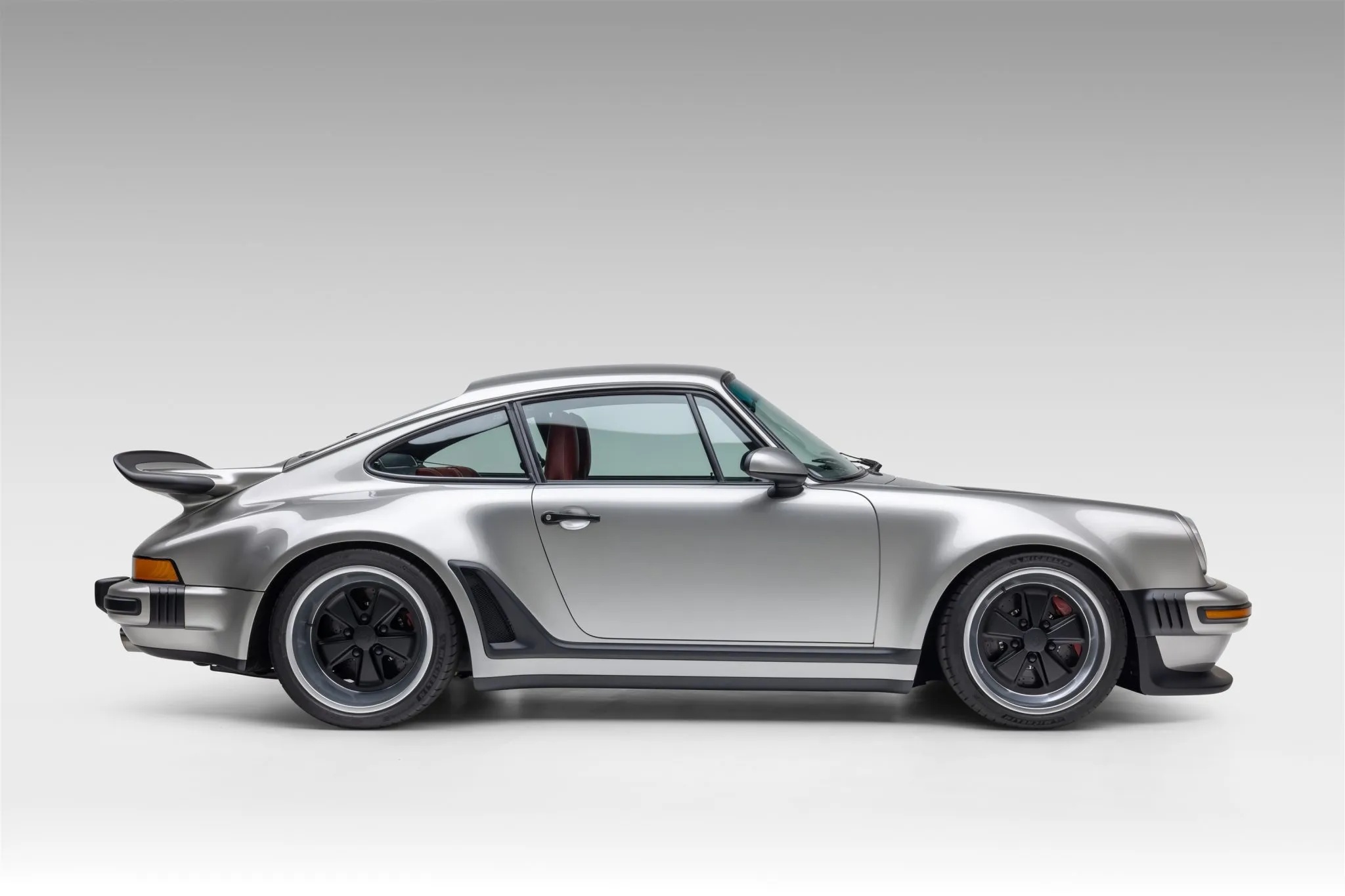 The car’s custom carbon-fiber bodywork preserves the iconic look of the 930-era 911 Turbo while refining aerodynamics for improved airflow and downforce. It also benefits from model-specific brakes, along with modern ABS and traction control systems.