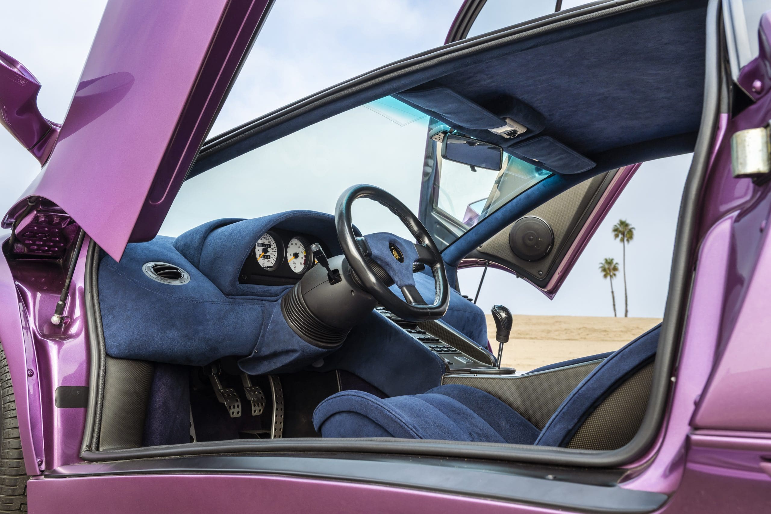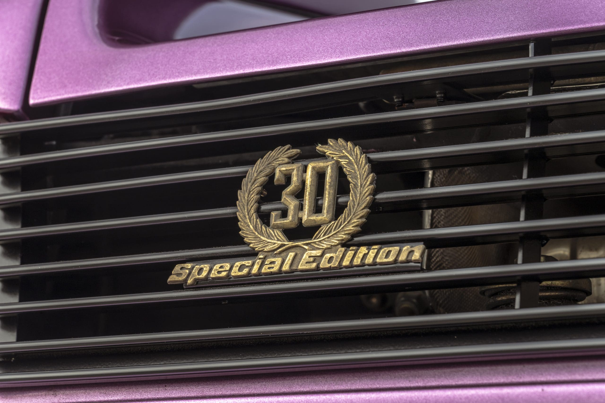 This example, showing just under 12,900 km from new, is offered by RM Sothebyโs. It was finished in the signature Viola SE30 paint over a Blu Alcantara interior. After three years in Germany, it was sold to Japan in 1997, passing through several owners before arriving in the U.S. in 2023.