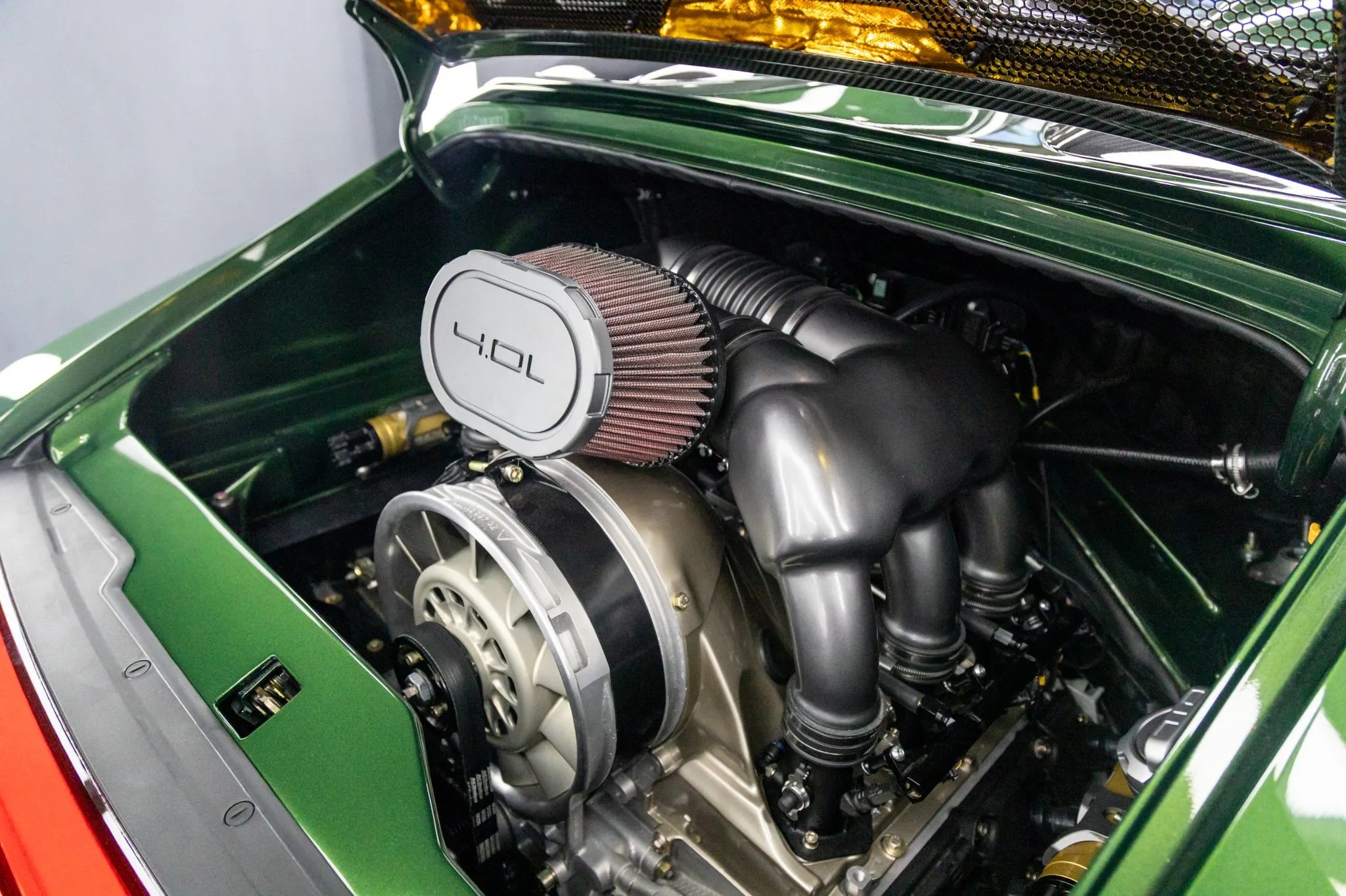 Power comes from a reworked version of the original 3.6-liter flat-six, enlarged to 4.0 liters by Rothsport Road and Race. Featuring forged internals, individual throttle bodies, and MoTeC engine management, it delivers over 430 horsepower and 330 lb-ft of torque. A reinforced Getrag G50 six-speed manual transmission handles power delivery.