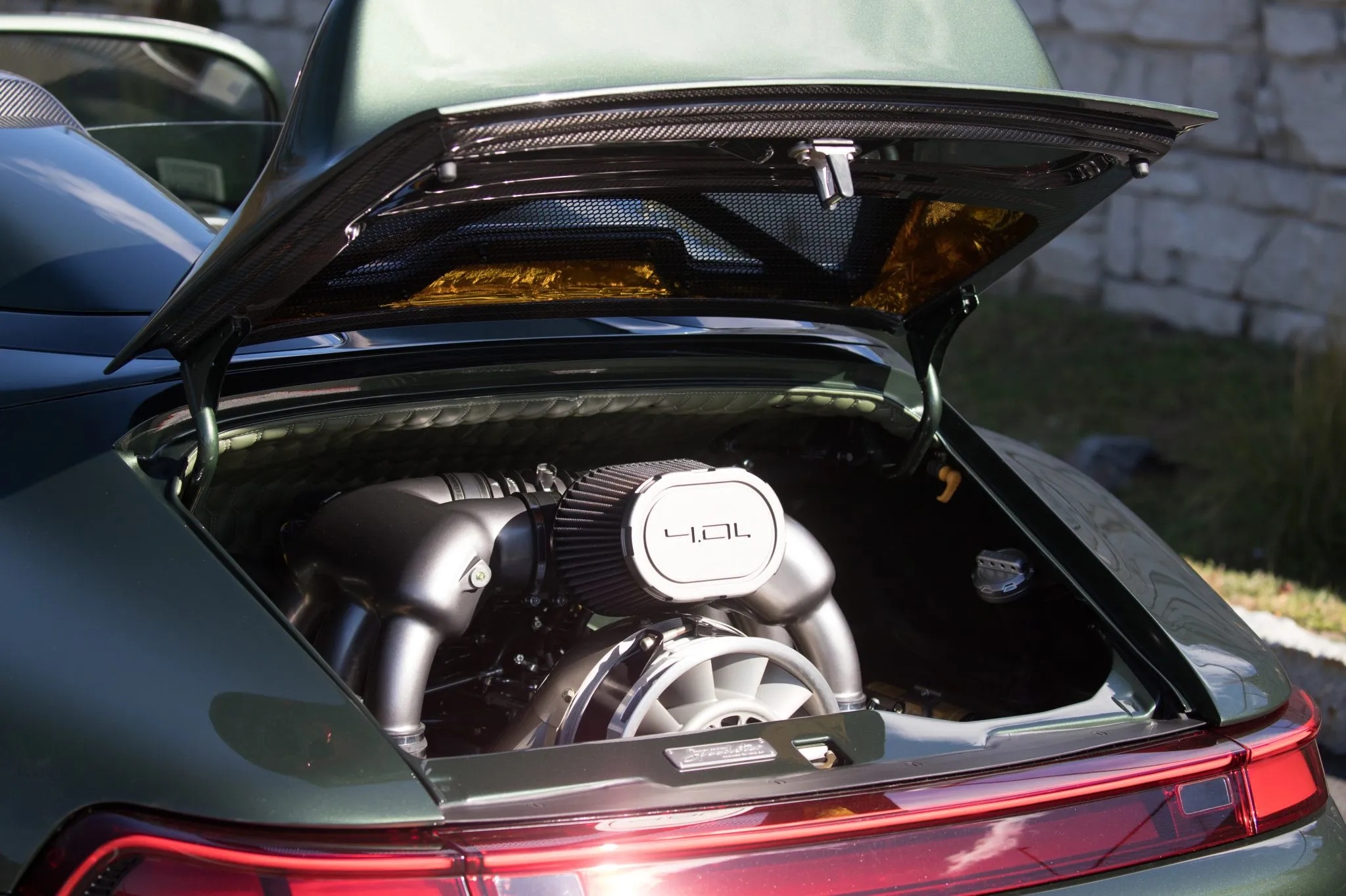 Based in Huntington Beach, California, Gunther Werks is known for transforming air-cooled Porsche 911s into what the brand’s 993 might resemble had its development continued into the modern era. Carbon fiber is extensively integrated into both the chassis and body structure, complemented by a tailored suspension system featuring DGR computer-controlled active coilovers, revised suspension geometry, stiffer anti-roll bars, lightweight uprights, and a hydraulic front-lift setup.