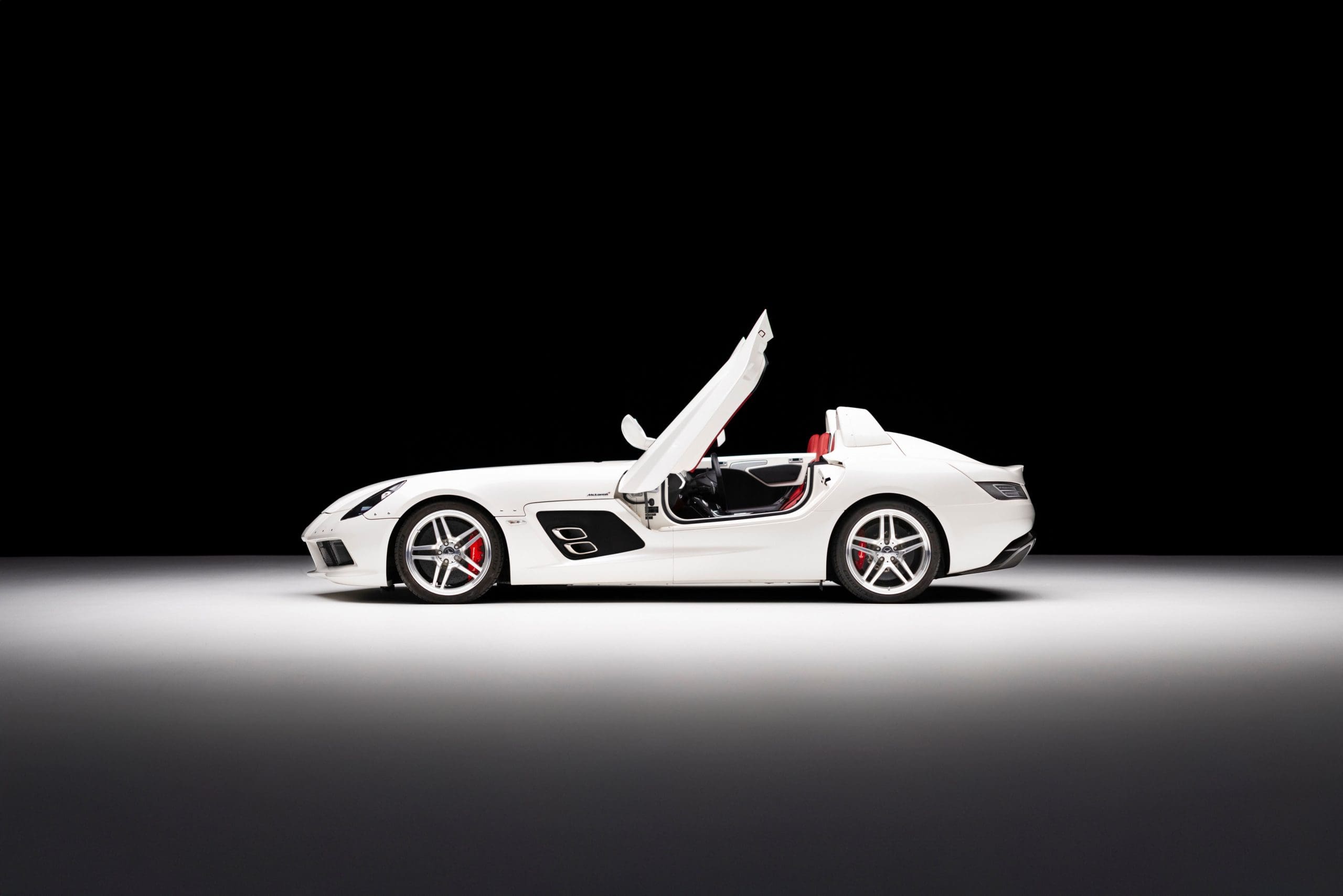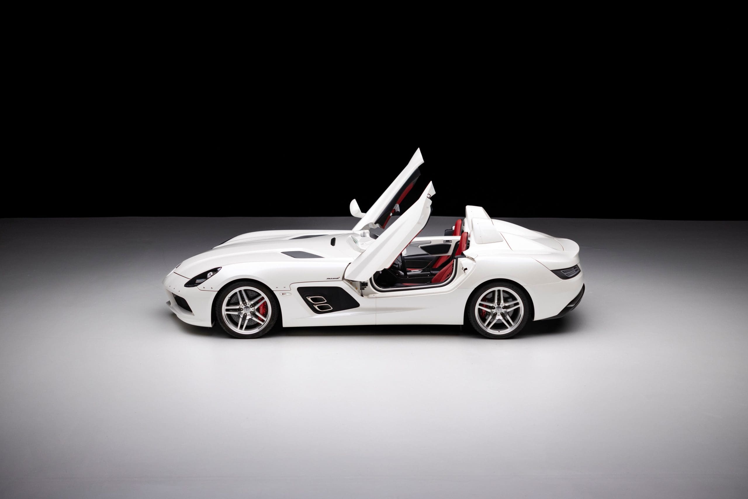 Weighing 200 kg less than the standard SLR at 1,620 kg, itโ€™s powered by a 5.4-liter supercharged V8 producing 650 hp, allowing 0โ€“100 km/h in 3.5 seconds and a 354 km/h top speed. It honors Sir Stirling Mossโ€™s 1955 Mille Miglia triumph with distinctive styling, widened by 7 mm, sharper steering, and firmer suspension.