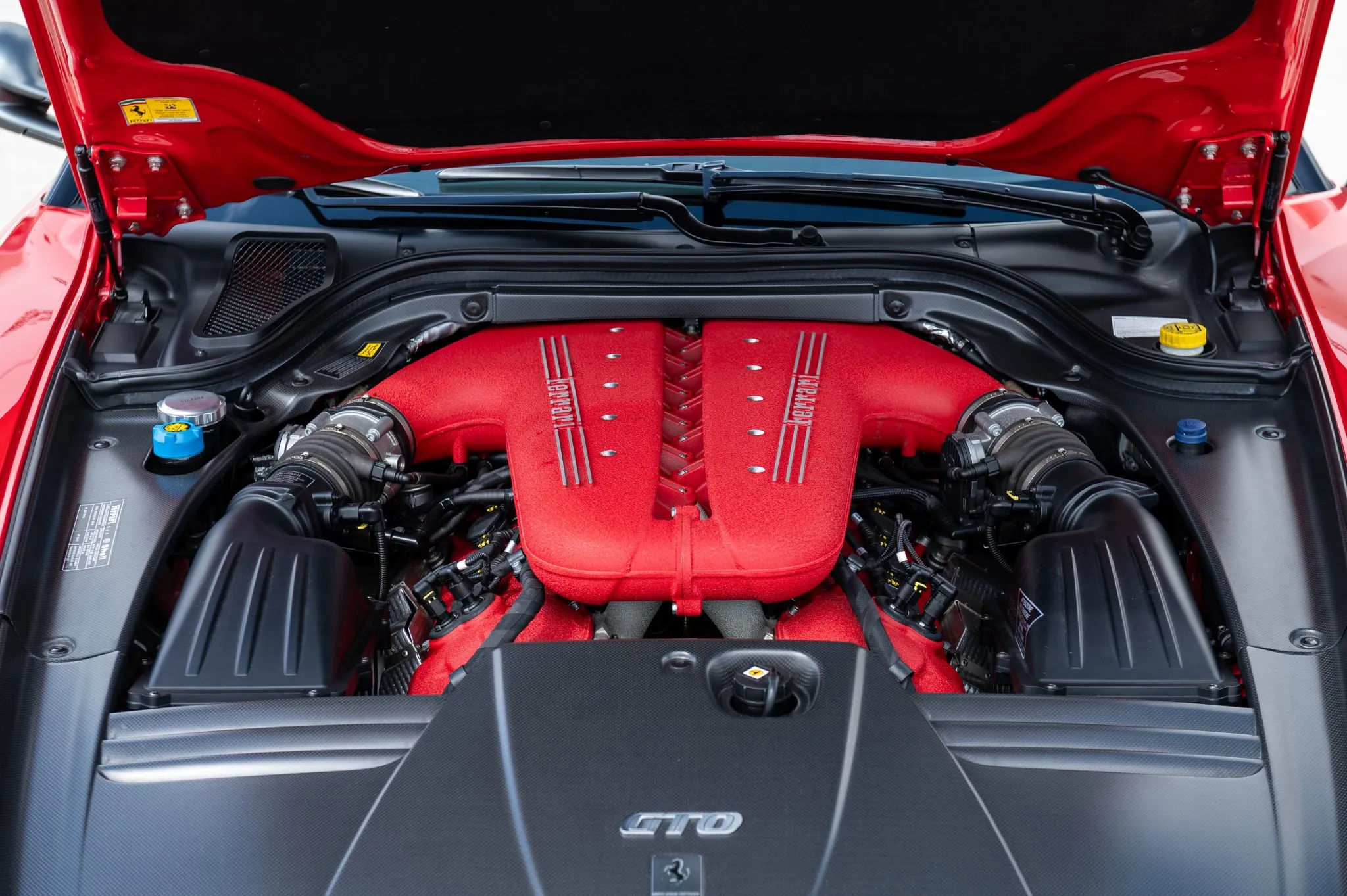 Power gains came from reduced engine friction, a higher compression ratio, and revised intake and exhaust systemsโall compliant with Euro 5 standards. The GTO also featured a faster-shifting gearbox, adaptive dampers, advanced traction control, and extensive weight-saving measures including carbon seats, lighter materials, and carbon-ceramic brakes with carbon pads. Limited to 599 units, it was offered exclusively to Ferrariโs most loyal clients.