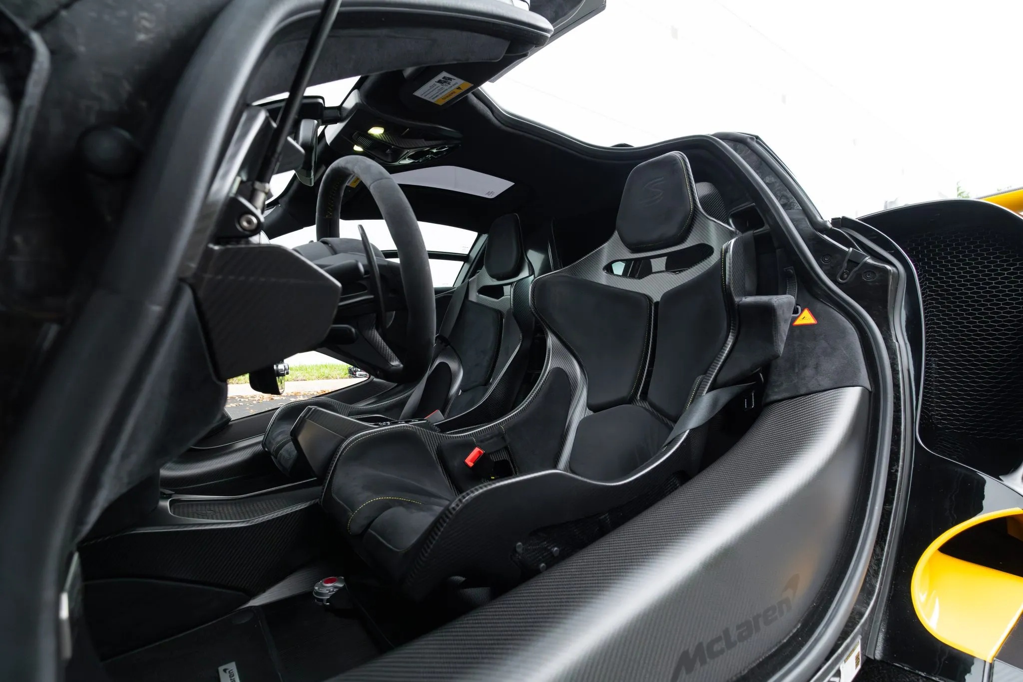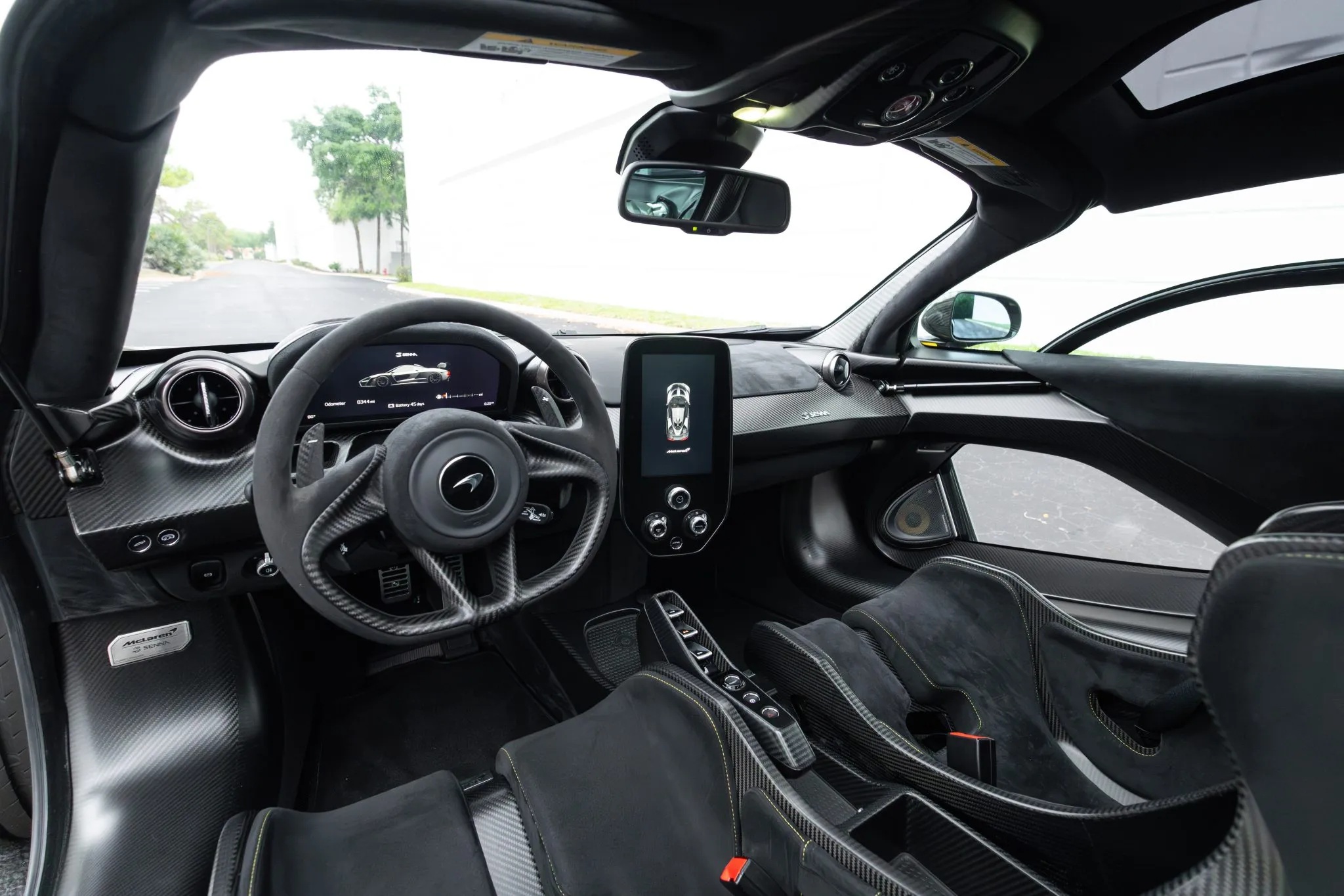 The technology continues inside and out, featuring signature dihedral doors, Gorilla Glass panels, a premium Bowers & Wilkins sound system, parking sensors, a rearview camera, and McLaren’s track telemetry system.