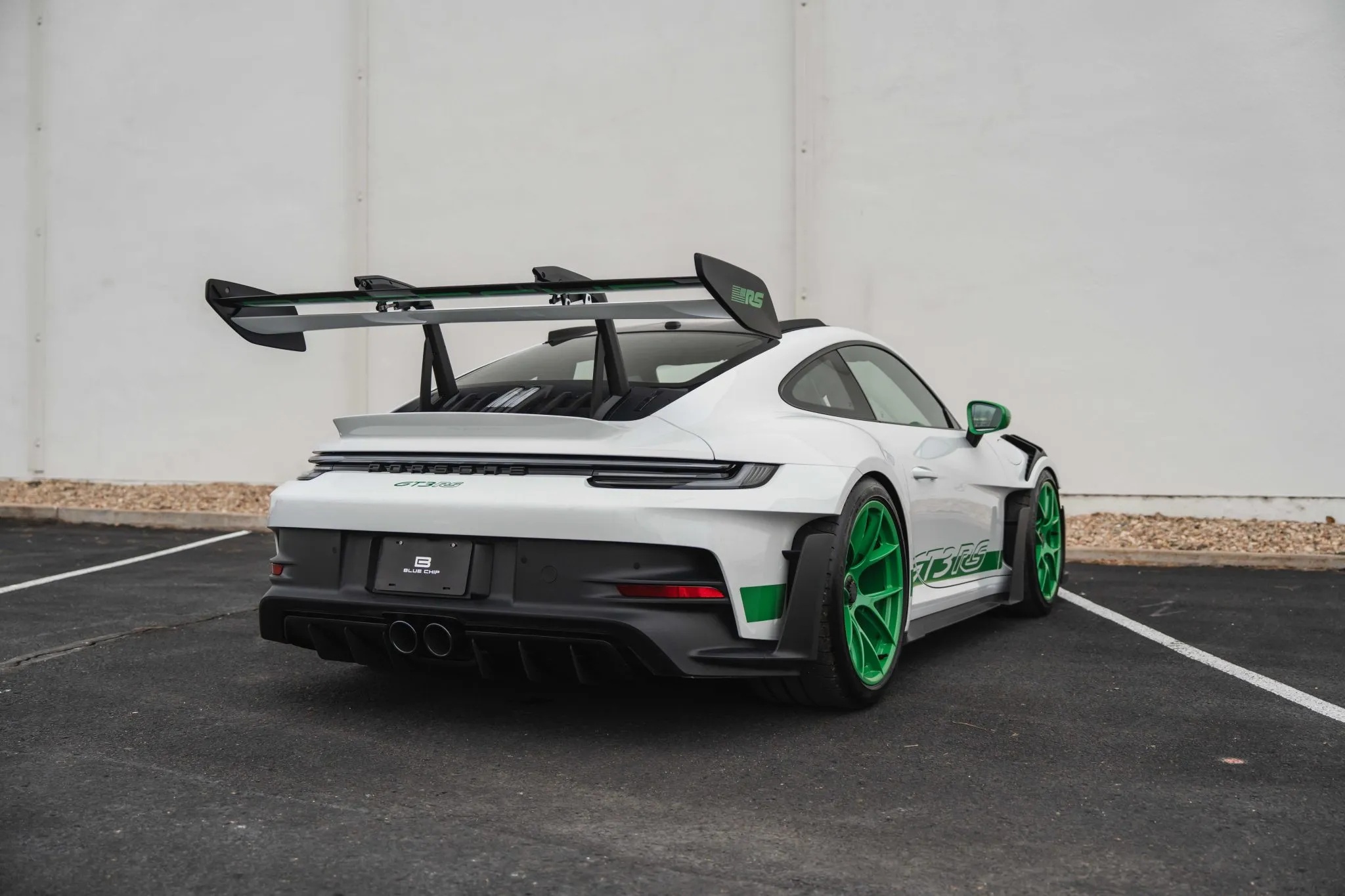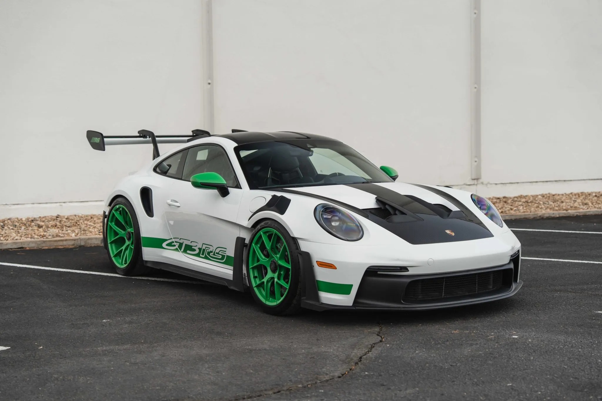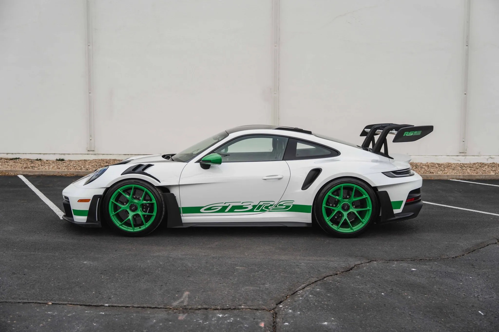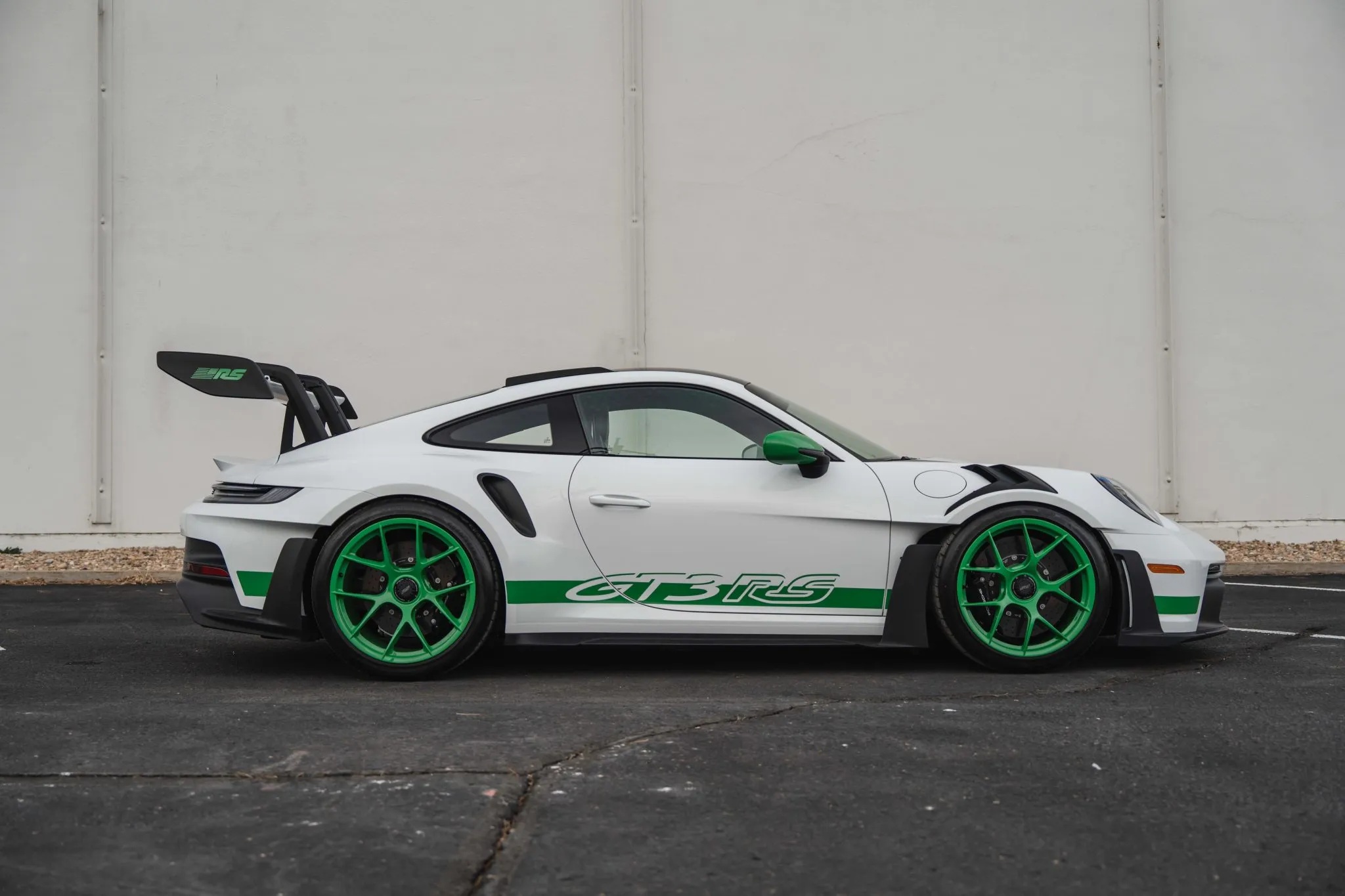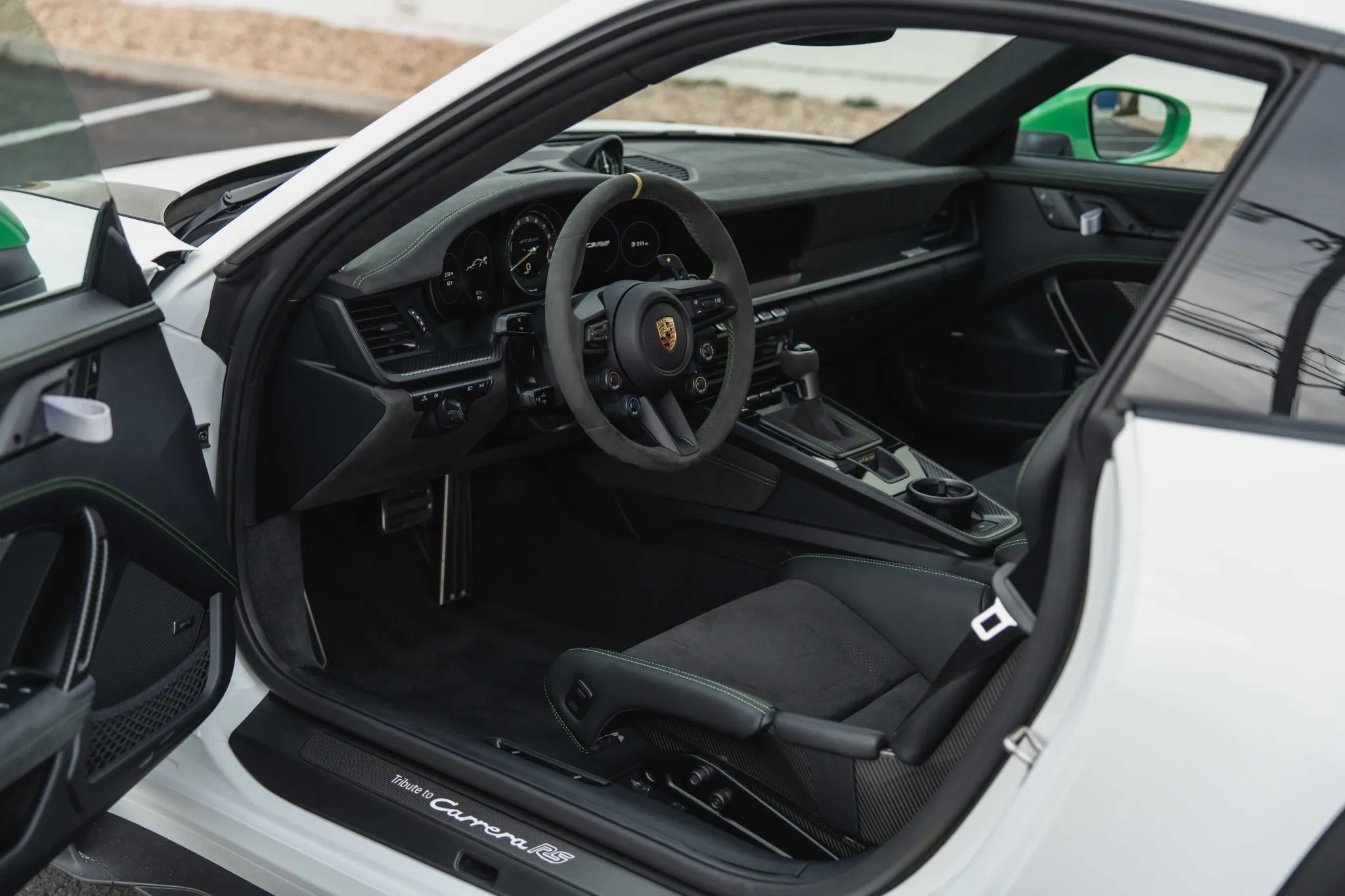 Currently listed on Bring a Trailer, this 2023 Porsche 911 GT3 RS shows just 76 miles and was specified with the $20,000 Tribute to Carrera RS Package alongside the Weissach Package. Limited to 150 units in the United States, the Tribute Package pays homage to the 1973 Carrera RS 2.7 and was only available in combination with the Weissach Package.