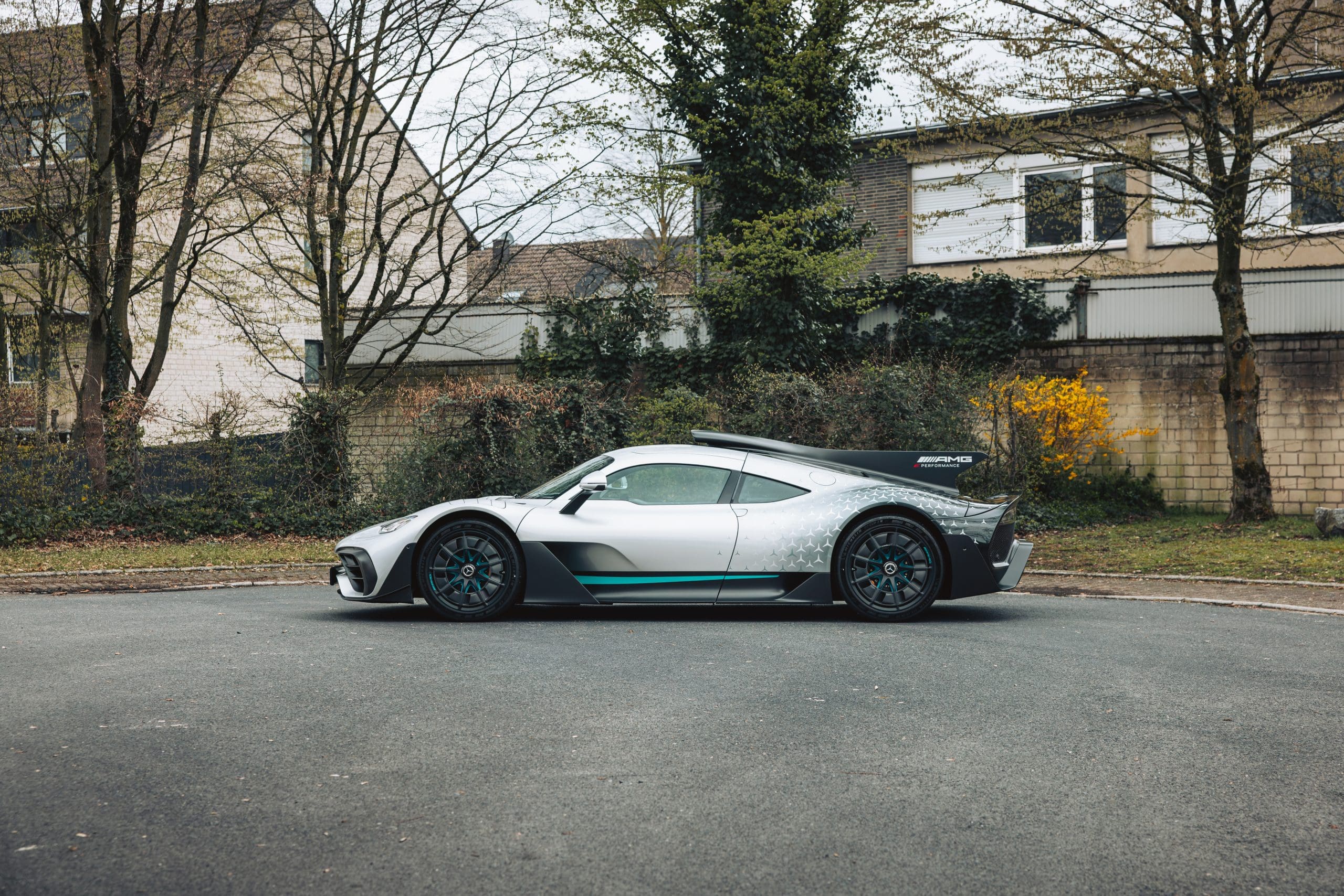 This particular example is finished in AMG Silver Arrow with Star livery and Petronas Green accents, complemented by a luxurious interior in Magma Grey Nappa leather and black microfibre. It includes advanced features such as active aerodynamics, a Formula 1-style drag-reduction system, ceramic brakes, and adjustable suspension.