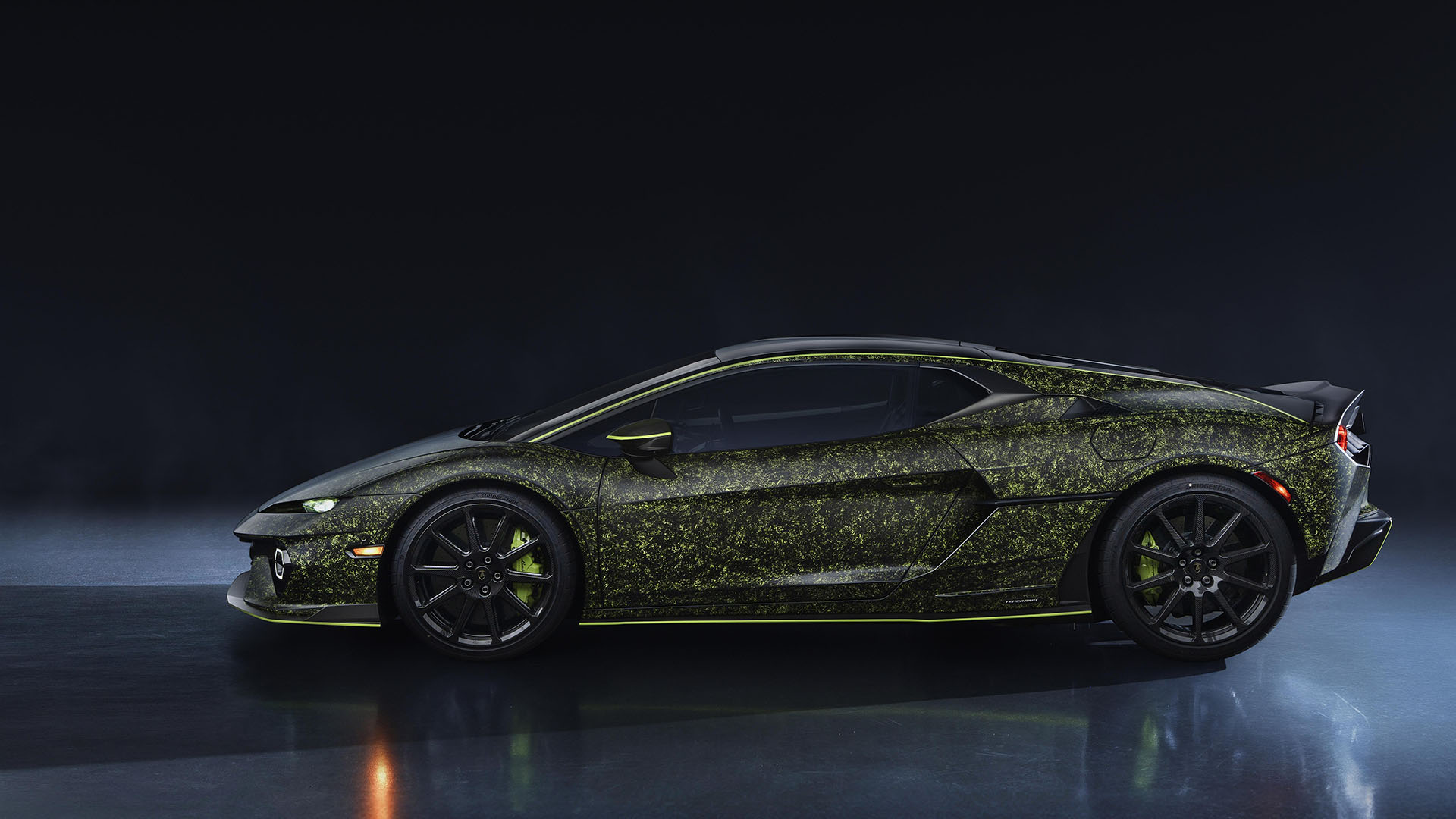 The finish blends Verde Shock, Grigio Maat, and Nero Nemesis into a crystal-like pattern that ripples across the bodywork, emphasizing the carโs sharp aero lines. The artistic approach highlights the lightweight “Alleggerita” package, which replaces key components with carbon fiber for owners craving even sharper track performance.
