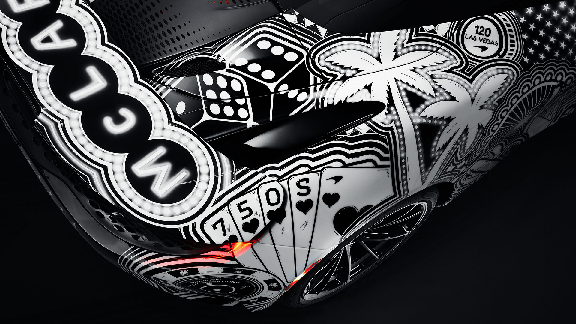 The special edition features Muriwai White accentsโreferencing McLarenโs heritageโas well as an all-new bespoke MSO color, Vegas Nights, developed specifically for Project Viva. The deep black finish is laced with microscopic flecks of cyan, magenta and green, creating a subtle neon shimmer reminiscent of Las Vegas after dark.