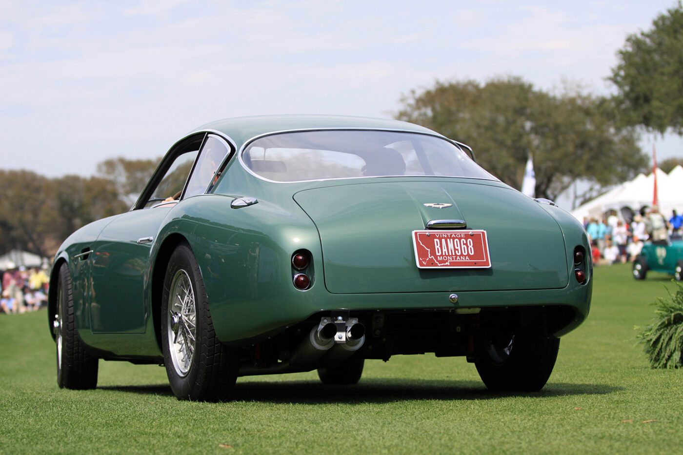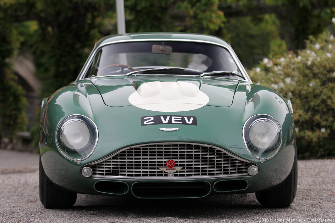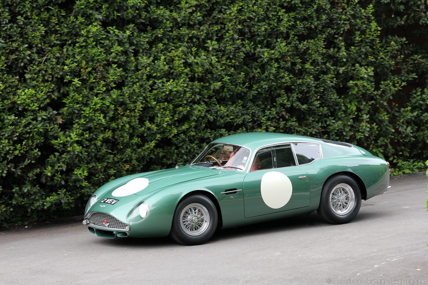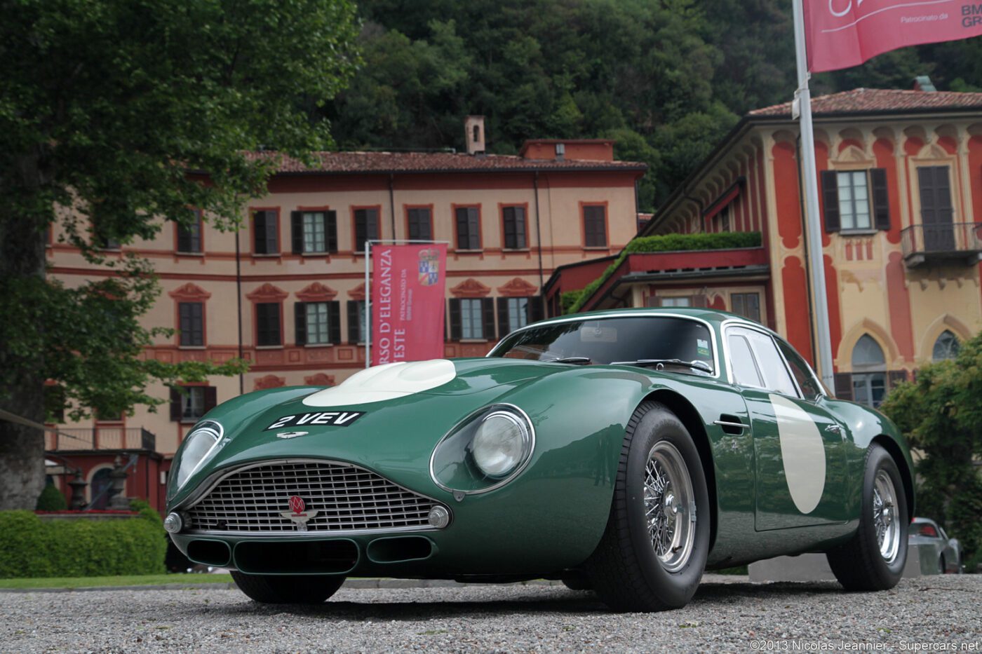The Zagato cars were built on a DB4GT chassis with an aluI minum body. This car was called a โrace car in luxury clothing.โ It was restored in 2014 in the original color scheme of mid metallic green lacquer. Read more about this car.