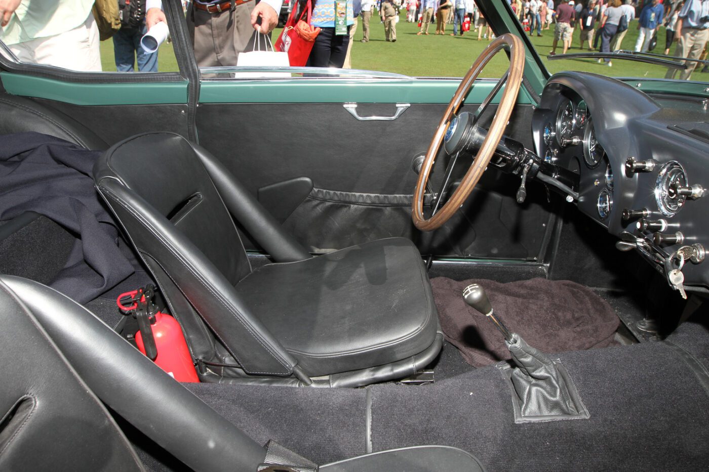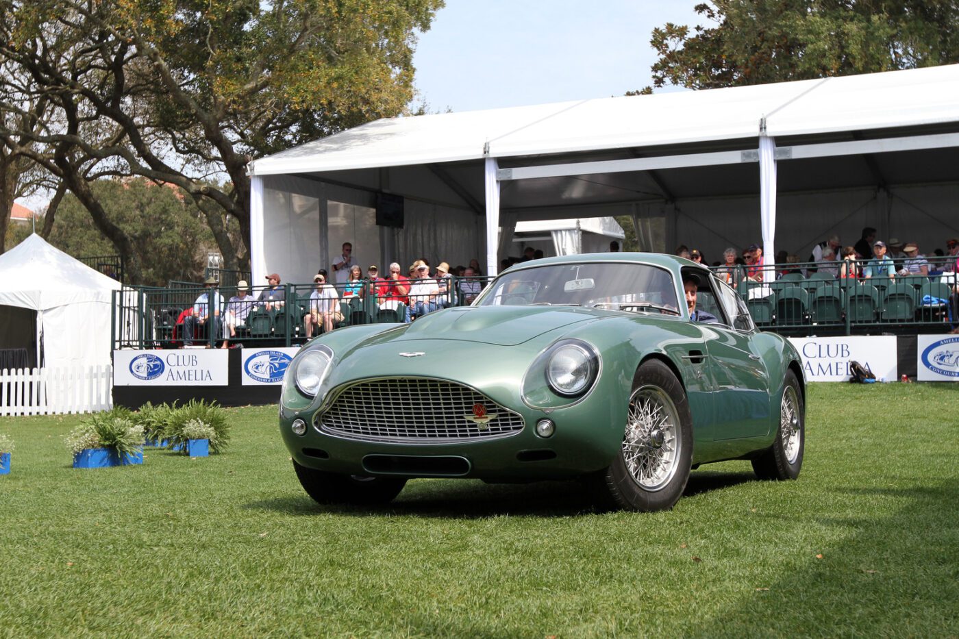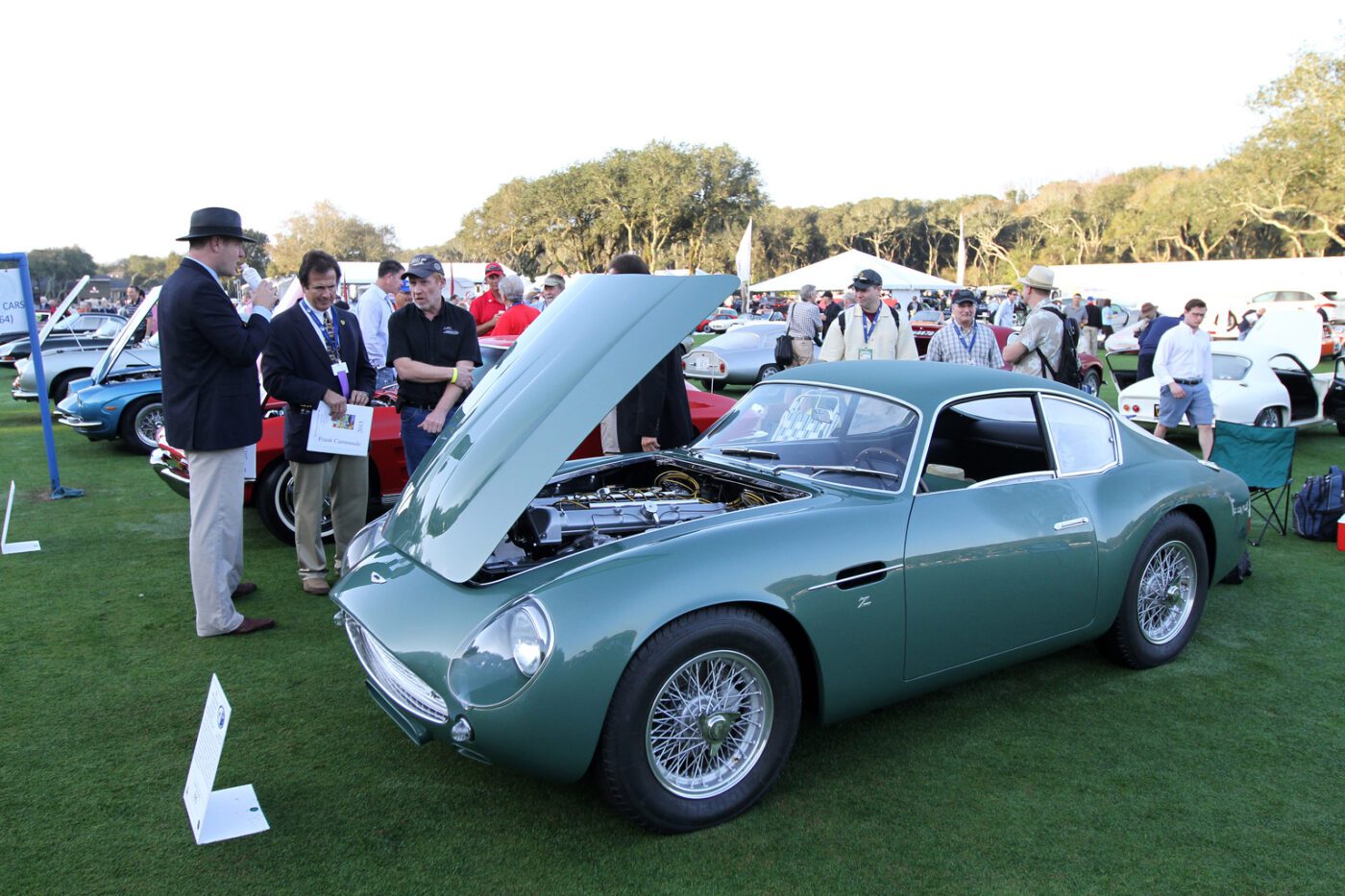 The Zagato cars were built on a DB4GT chassis with an aluI minum body. This car was called a โrace car in luxury clothing.โ It was restored in 2014 in the original color scheme of mid metallic green lacquer. Read more about this car.