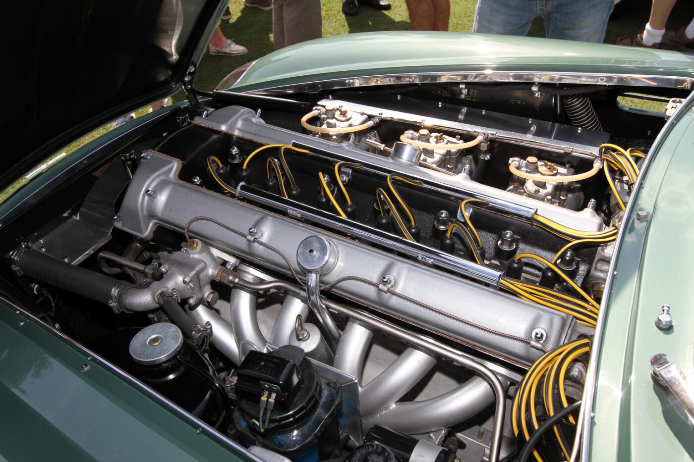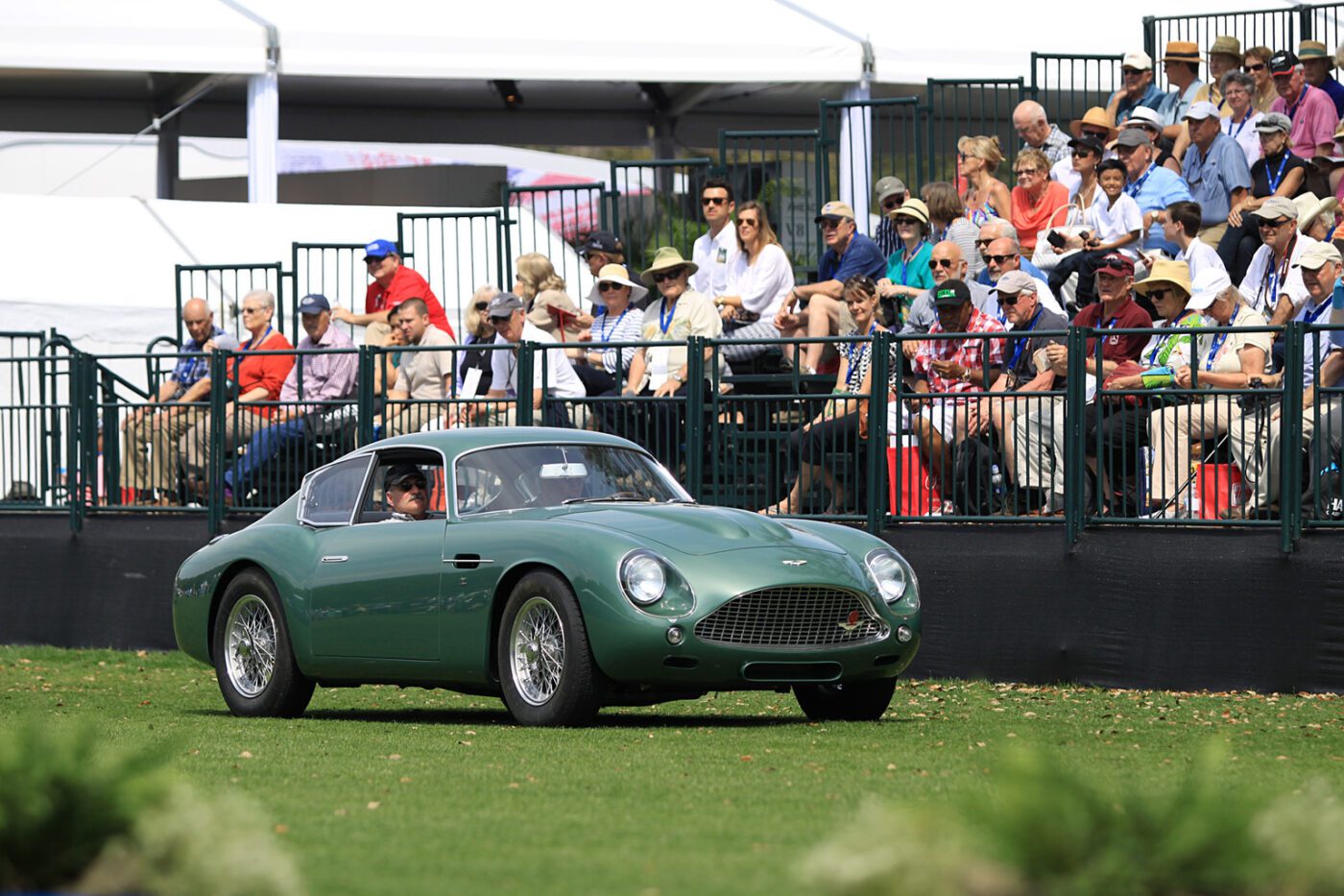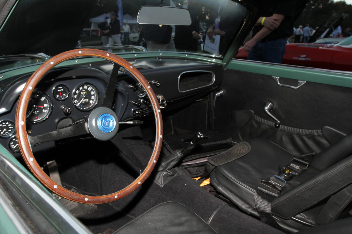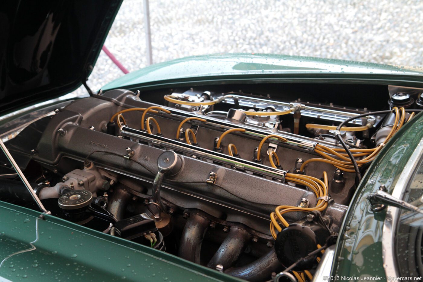 The Zagato cars were built on a DB4GT chassis with an aluI minum body. This car was called a โrace car in luxury clothing.โ It was restored in 2014 in the original color scheme of mid metallic green lacquer. Read more about this car.