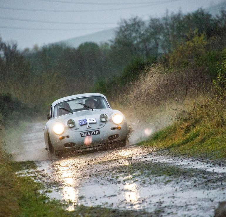 At 17:30 exactly on Thursday 5th of November the fireworks started from Slaley Hall, with Bill Ainscough and Jason Dearden leading the crews away in the oldest vehicle of the event, a 1954 Lancia Aurelia B20. It was immediate action as with a short run out into the grounds of Slaley, the first test was upon the crews. The compact nature of the prologue continued with two regularity sections almost back to back. The first instructions were delivered jogularity style and didnโt hold any fears for the majority of crews. The second regularity proved a little more interesting, a handout with four map references would see crews venture into the woods for the first time with many of them overshooting or missing a hairpin left junction into Slaley Forest. A final driving test in the grounds of Slaley Hall ended the eveningโs fun, a ford and several hairpin junctions had set the bar for what was going to be a truly enthralling event.
