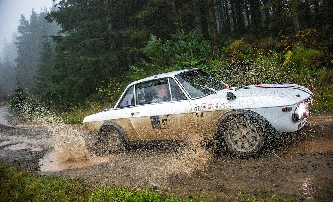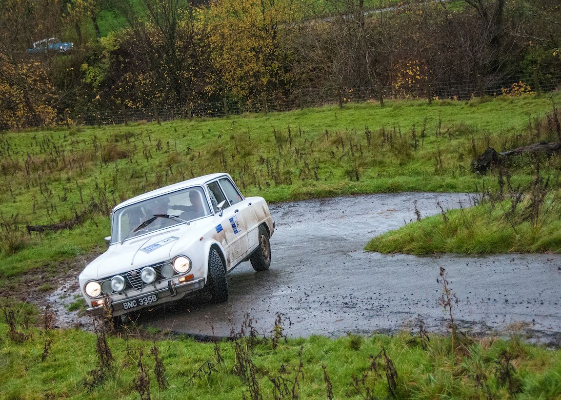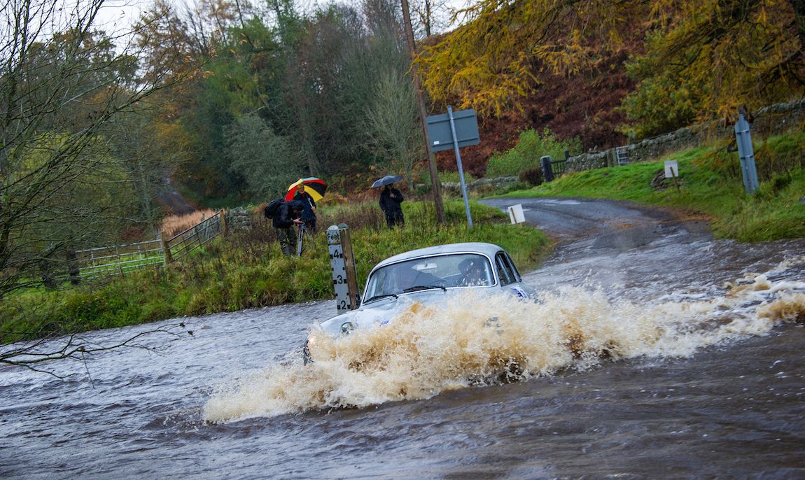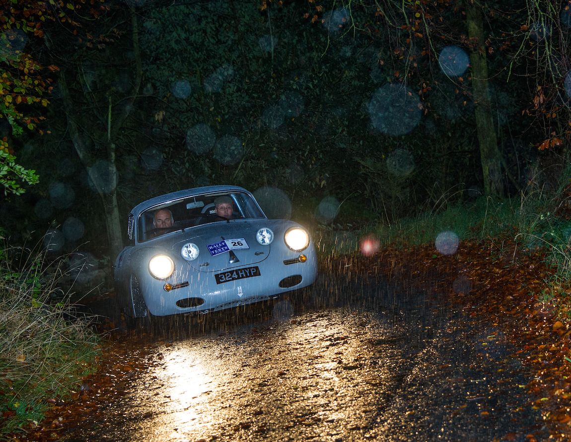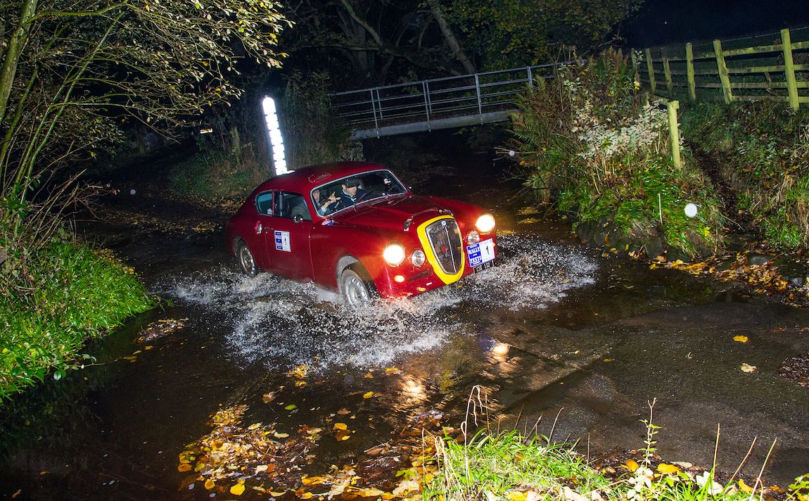 At 17:30 exactly on Thursday 5th of November the fireworks started from Slaley Hall, with Bill Ainscough and Jason Dearden leading the crews away in the oldest vehicle of the event, a 1954 Lancia Aurelia B20. It was immediate action as with a short run out into the grounds of Slaley, the first test was upon the crews. The compact nature of the prologue continued with two regularity sections almost back to back. The first instructions were delivered jogularity style and didnโt hold any fears for the majority of crews. The second regularity proved a little more interesting, a handout with four map references would see crews venture into the woods for the first time with many of them overshooting or missing a hairpin left junction into Slaley Forest. A final driving test in the grounds of Slaley Hall ended the eveningโs fun, a ford and several hairpin junctions had set the bar for what was going to be a truly enthralling event.