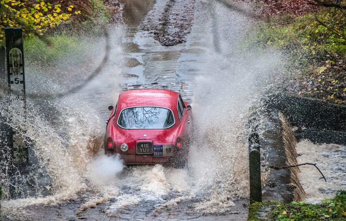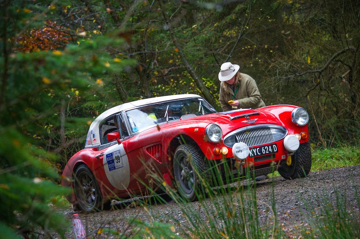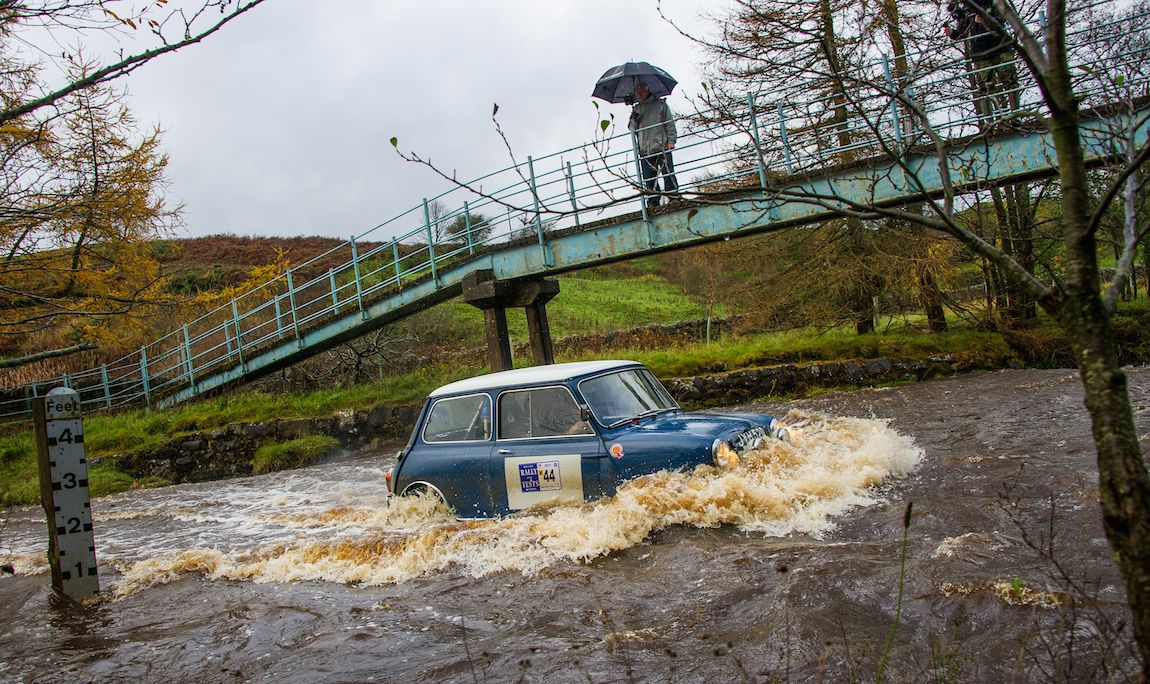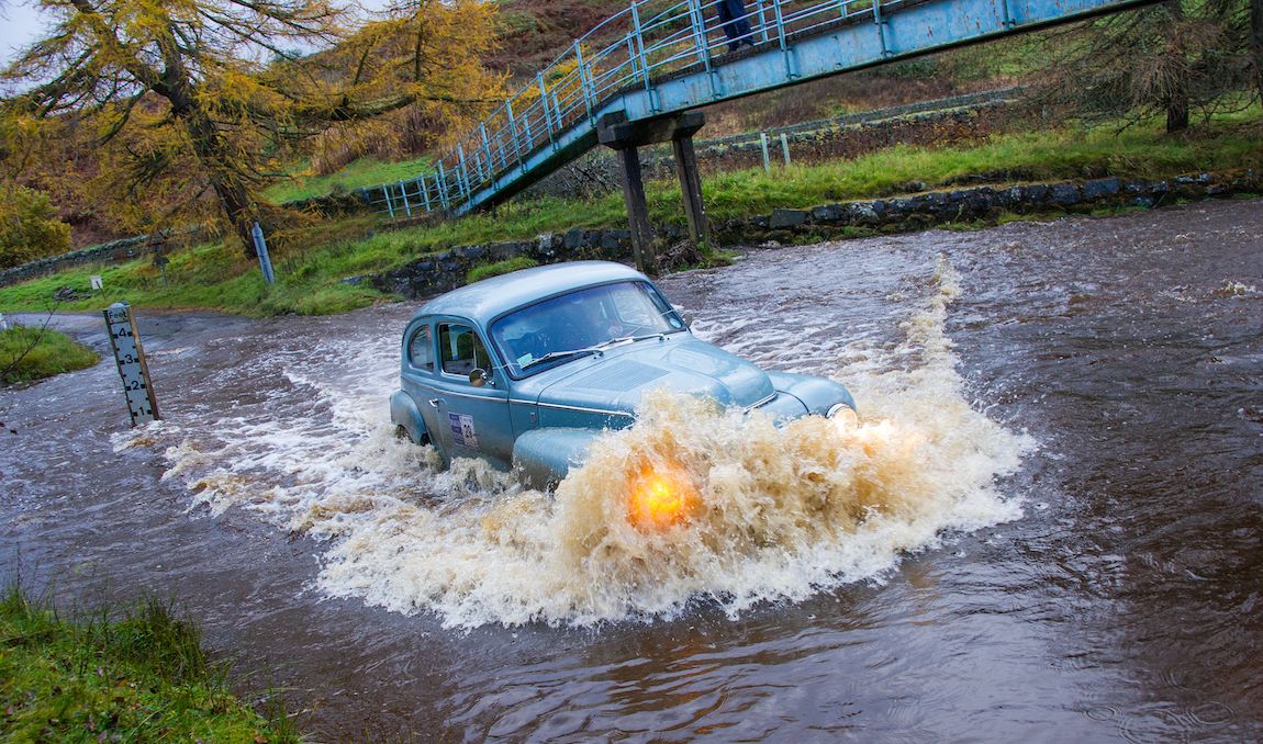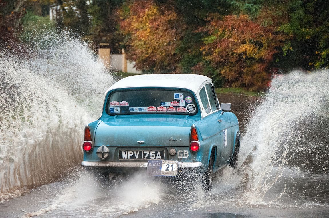 At 17:30 exactly on Thursday 5th of November the fireworks started from Slaley Hall, with Bill Ainscough and Jason Dearden leading the crews away in the oldest vehicle of the event, a 1954 Lancia Aurelia B20. It was immediate action as with a short run out into the grounds of Slaley, the first test was upon the crews. The compact nature of the prologue continued with two regularity sections almost back to back. The first instructions were delivered jogularity style and didnโt hold any fears for the majority of crews. The second regularity proved a little more interesting, a handout with four map references would see crews venture into the woods for the first time with many of them overshooting or missing a hairpin left junction into Slaley Forest. A final driving test in the grounds of Slaley Hall ended the eveningโs fun, a ford and several hairpin junctions had set the bar for what was going to be a truly enthralling event.