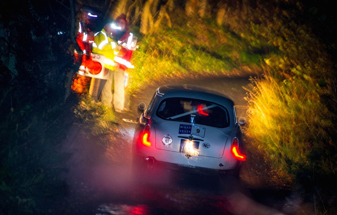 New pairing Jan Ebus and Thijs Bender had a moment in their Porsche 356. A fuel line clip broke, swiftly depositing a considerable amount of fuel in the cabin. A hasty repair saw the car bailed out of fuel, the carpets retaining the smell of fuel for a while causing the crew to suffer with headaches.