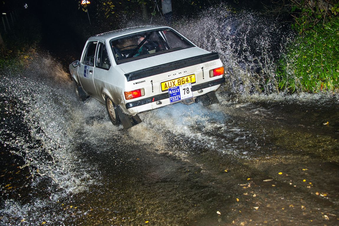 John and Peter Dignan were going from strength to strength and producing the drive of the event. With John only in his tenth competitive foray, they led the field for most of day two as the event turned seriously wet on its return into England. The torrential rain caused Andy Lane and Matt Fowle alternator problems, handing the lead to the Dignanโs on least penalties. Although not as long as the previous day, the challenge of the weather and some night time TC sections in Catterick military complex proved daunting for many crews. Warren and Tullie stamped their authority and were the class of the field as the event overnighted in Darlington. Pressing hard were Neil Wilson and Matthew Vokes to lie in second in the overall awards, in turn they were being pressed by David Morgan and Martyn Taylor in their Volvo 123GT.