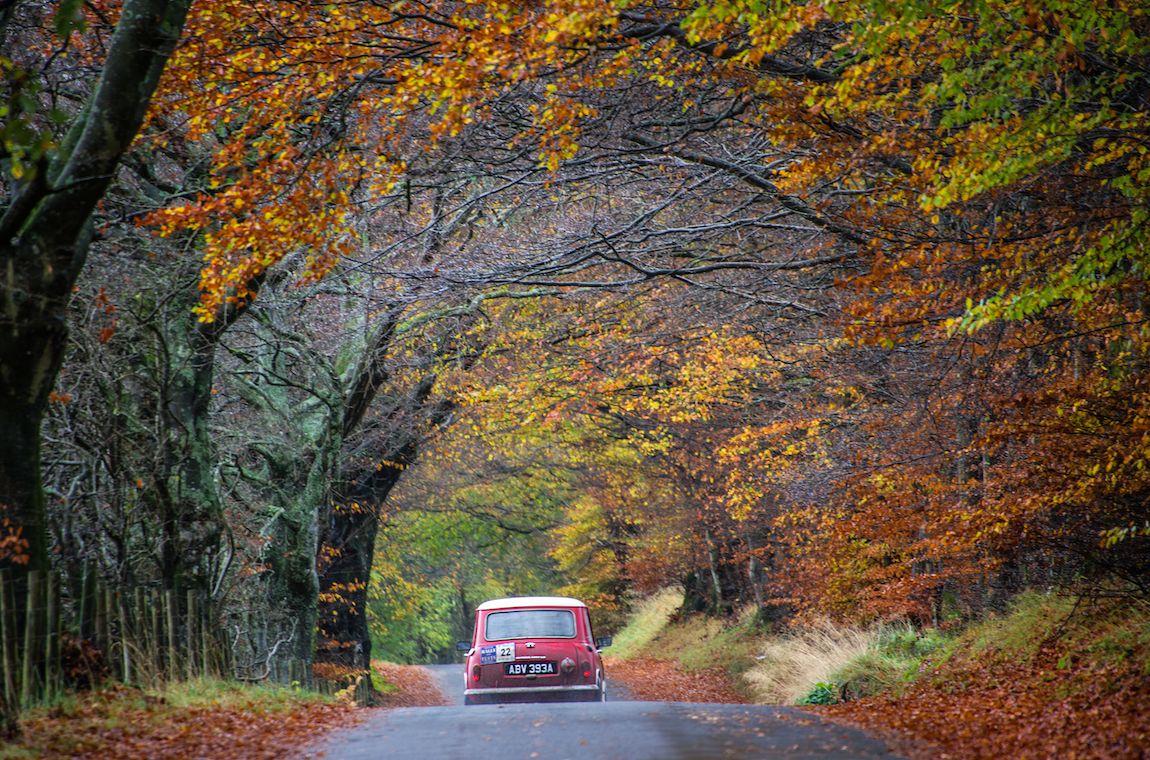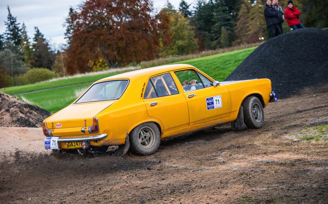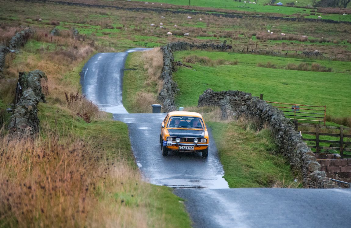 First up were three driving tests in the infamous Kielder Forest. Using some of the lesser known routes in the woods, the surfaces were incredibly slippy, causing problems for Robin Eyre-Maunsell and Peter Scott in their immaculate Ford Escort RS2000. A visit to the scenery on test two was a temporary setback — the crew still managing to set a blisteringly quick time. Heading further north and across the border into Selkirk via Hawick, the weather and mother nature aided some clever use of topography to take time from the crews; leaves had blown across a white line that denoted a junction meaning that several crews missed a turn, some carrying on for longer than others before realising their error. The time control just after the junction taking seconds off the top crews.