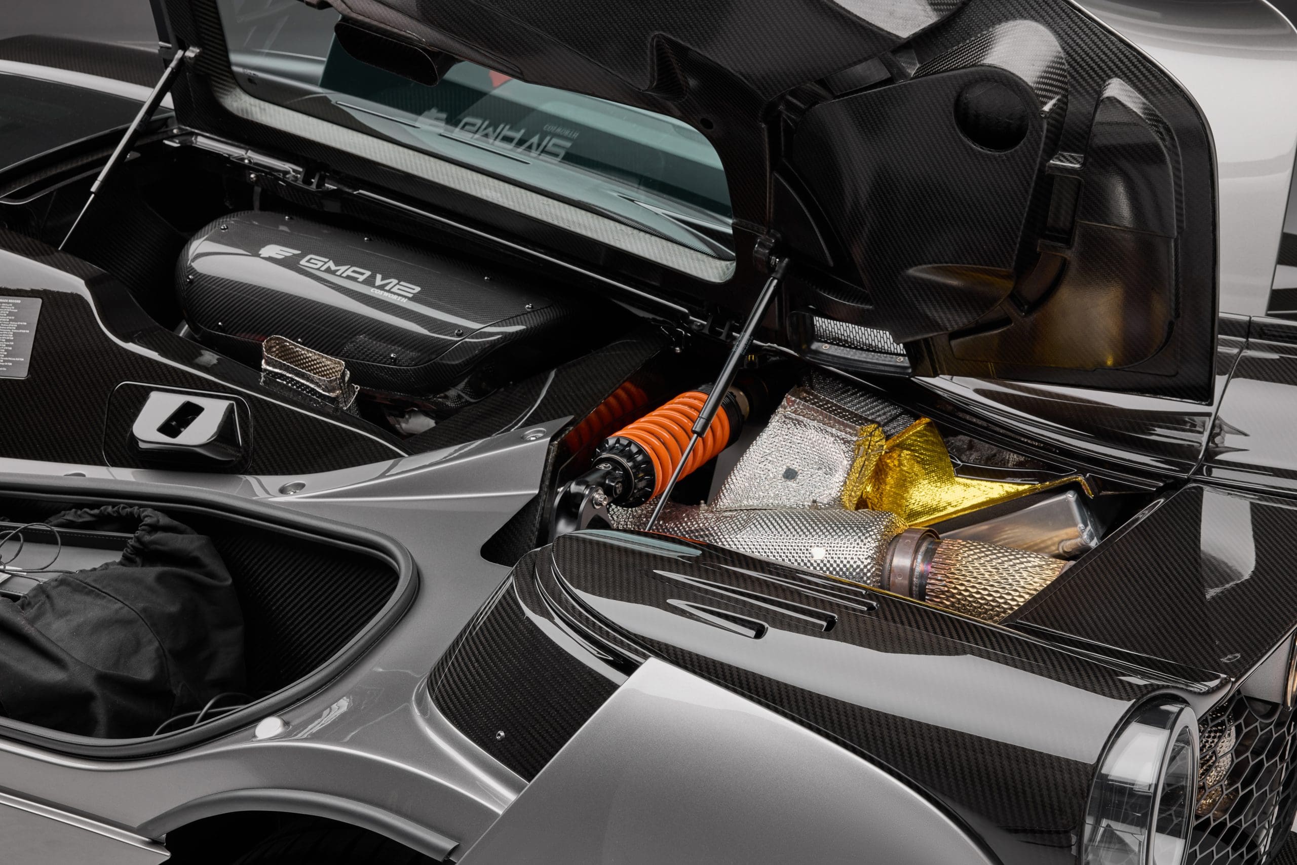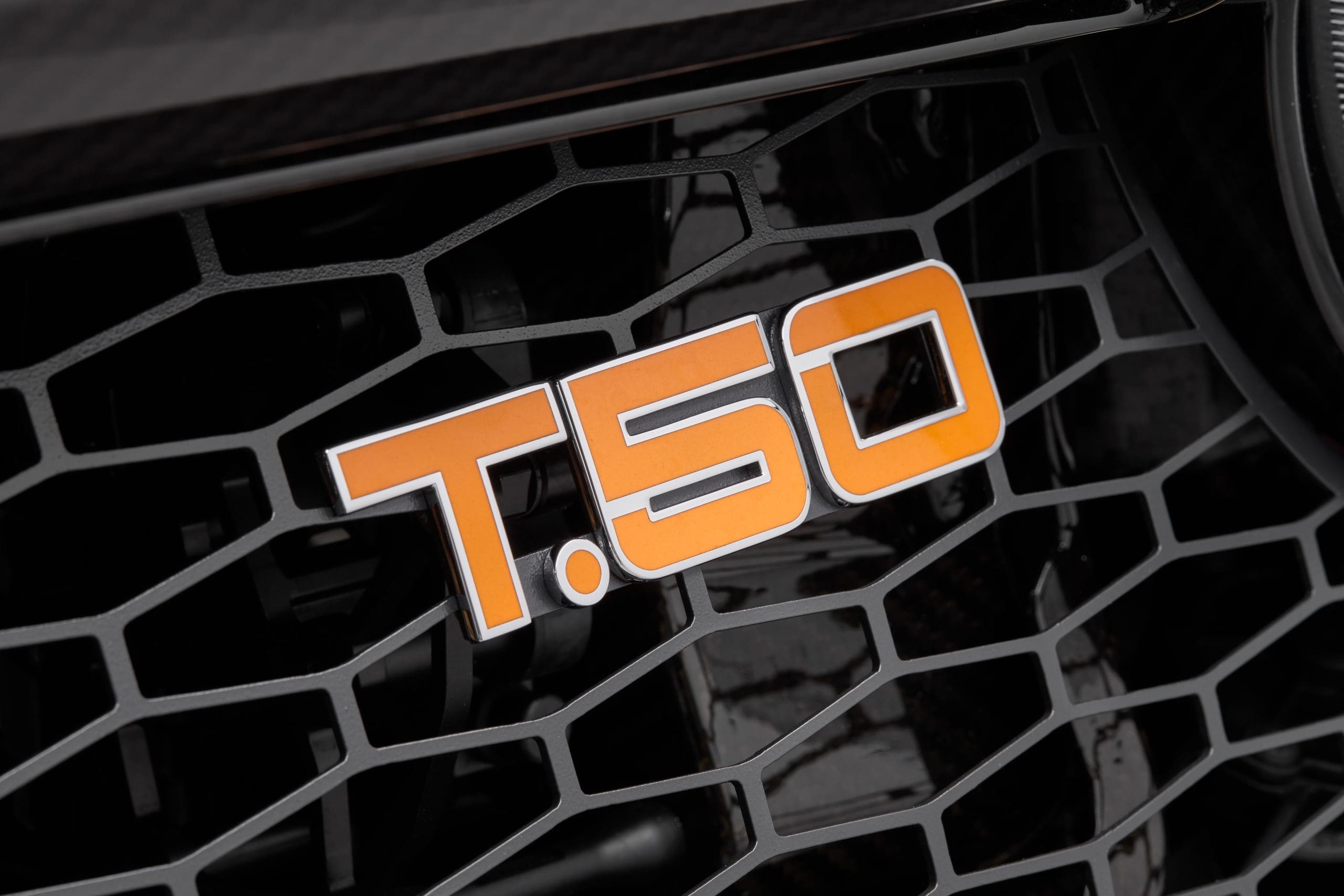 Its exterior is finished in Harrier paint with Gloss Carbon accents, Dark Grey wheels, and black brake calipers. Unlike most manufacturers, Gordon Murray Automotive included all customizationsโ€”like a glass roof, Heritage Orange badging, and a special Touring gear ratioโ€”at no extra cost, ensuring no two T.50s are identical.