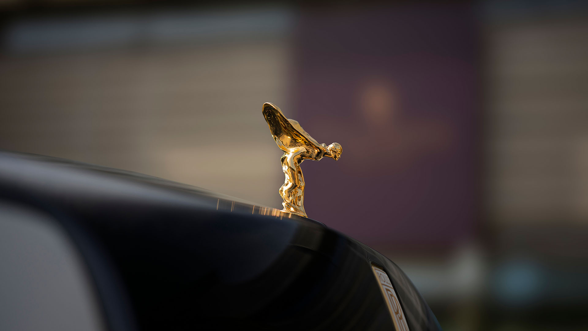 Crowning the bonnet is a masterpiece in itself: a solid 18-carat gold Spirit of Ecstasy, plated in 24-carat gold and bearing a bespoke โPhantom Centenaryโ hallmark from the London Assay Office. It sits on a hand-poured white enamel base, the first of its kind. Even the iconic โRRโ badges gleam in 24-carat gold and white enamel โ a nod to perfectionism that borders on obsession.